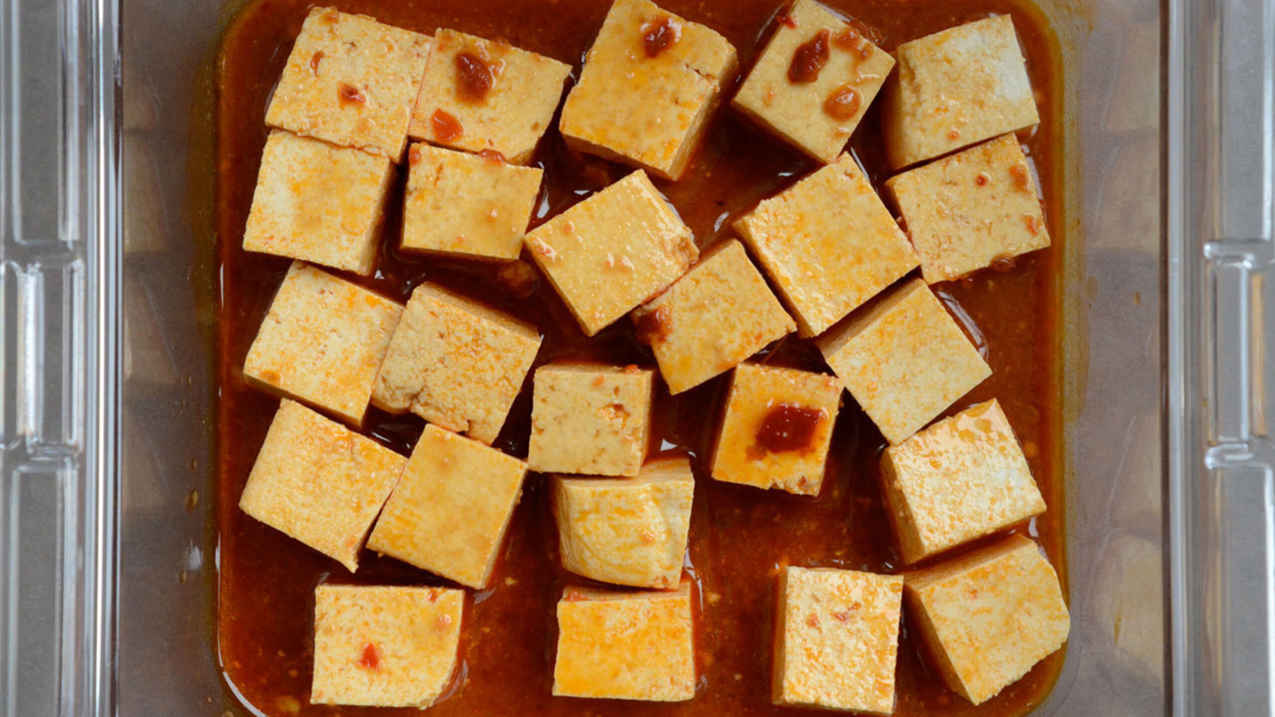 To prepare the tofu, cut into small pieces. Mix the remaining ingredients together and add the tofu. Stir to combine and set aside while you prepare the rest of your mise en place. Note that this step can be done well ahead and refrigerated.