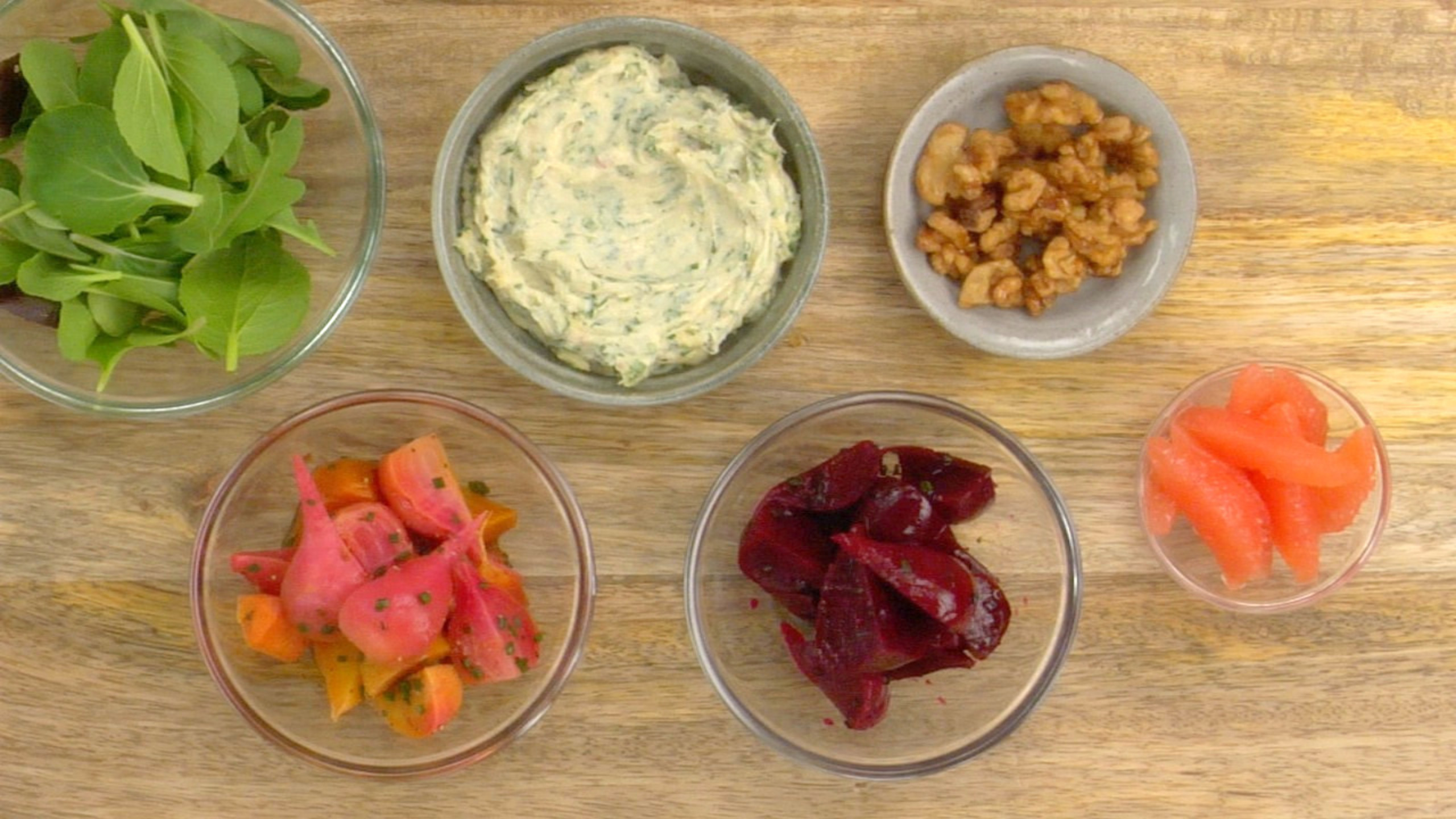 Make sure that the Roasted Beets in a Bag are roasted until tender, have cooled and are skinned, sliced into wedges and marinated per recipe instructions.