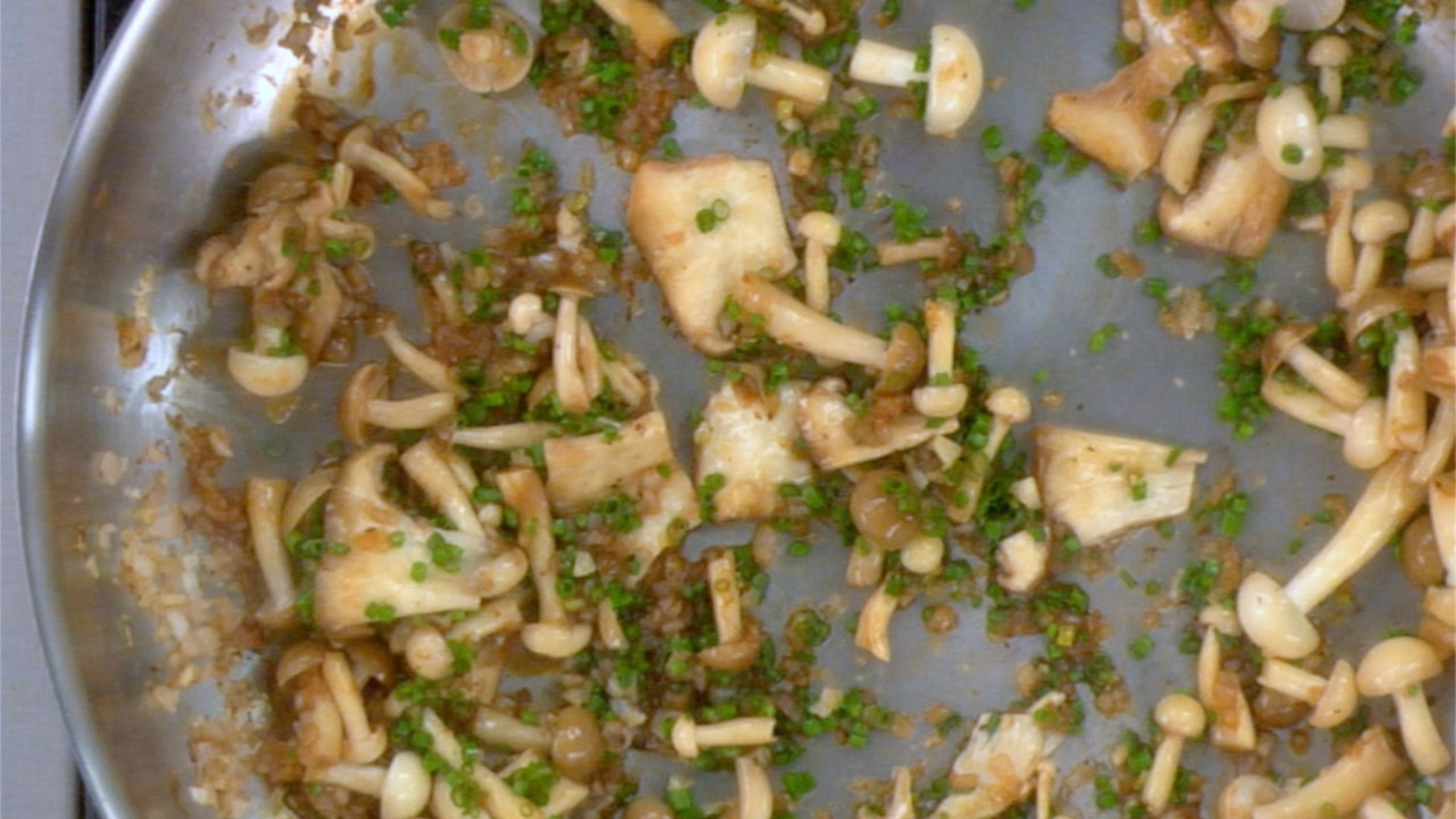 - 2 cup loosely packed wild mushrooms such as king oysters, shimiji or chanterelles