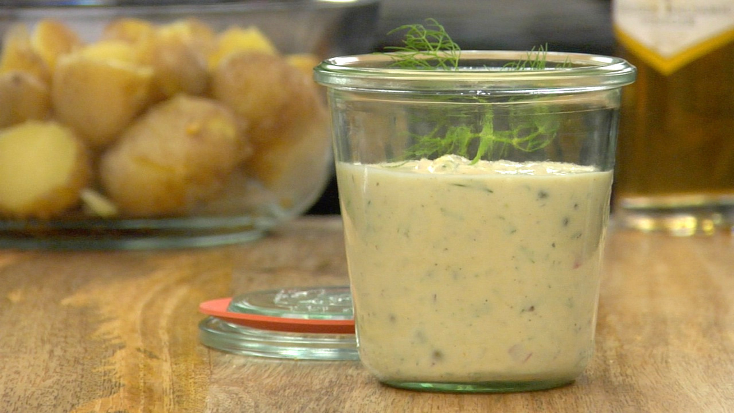 Make this aioli a bit thicker and use as a topping for any number of canapés and appetizers.