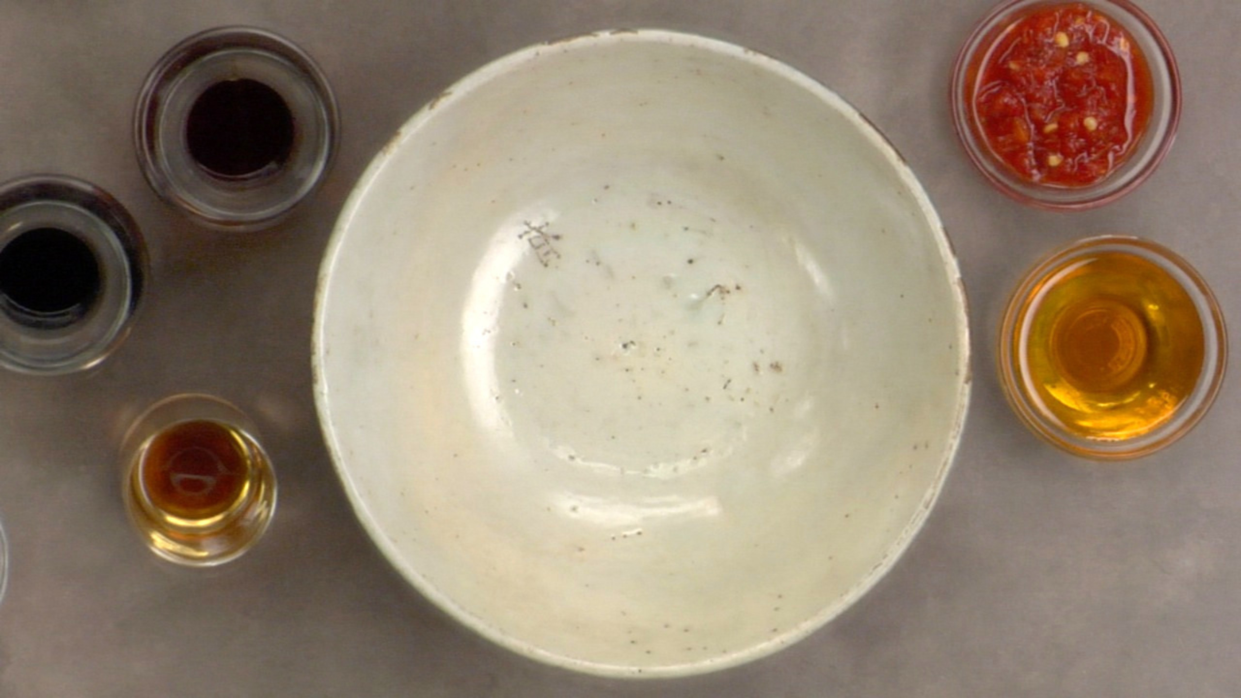 To make the sauce, combine the sesame oil, soy sauce, Shao Hsing wine, agave, sambal and white pepper. Whisk to blend the ingredients. Lastly, add the cornstarch.
