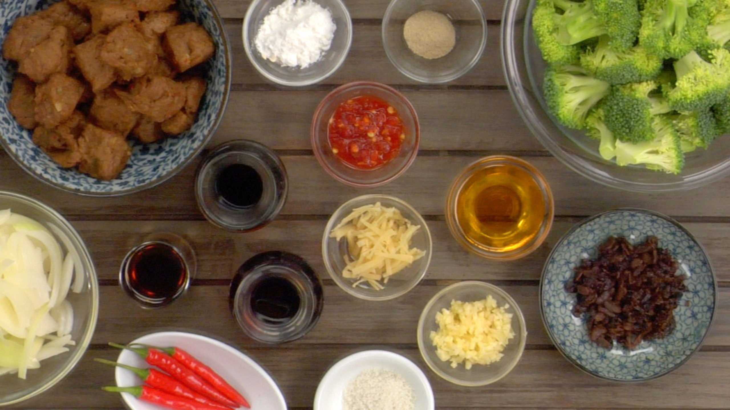 Mince the garlic and ginger and slice the Thai chilies on the bias. Have your fermented black beans and vegetable stock available for stir-frying, as well as the Beefless Tips.