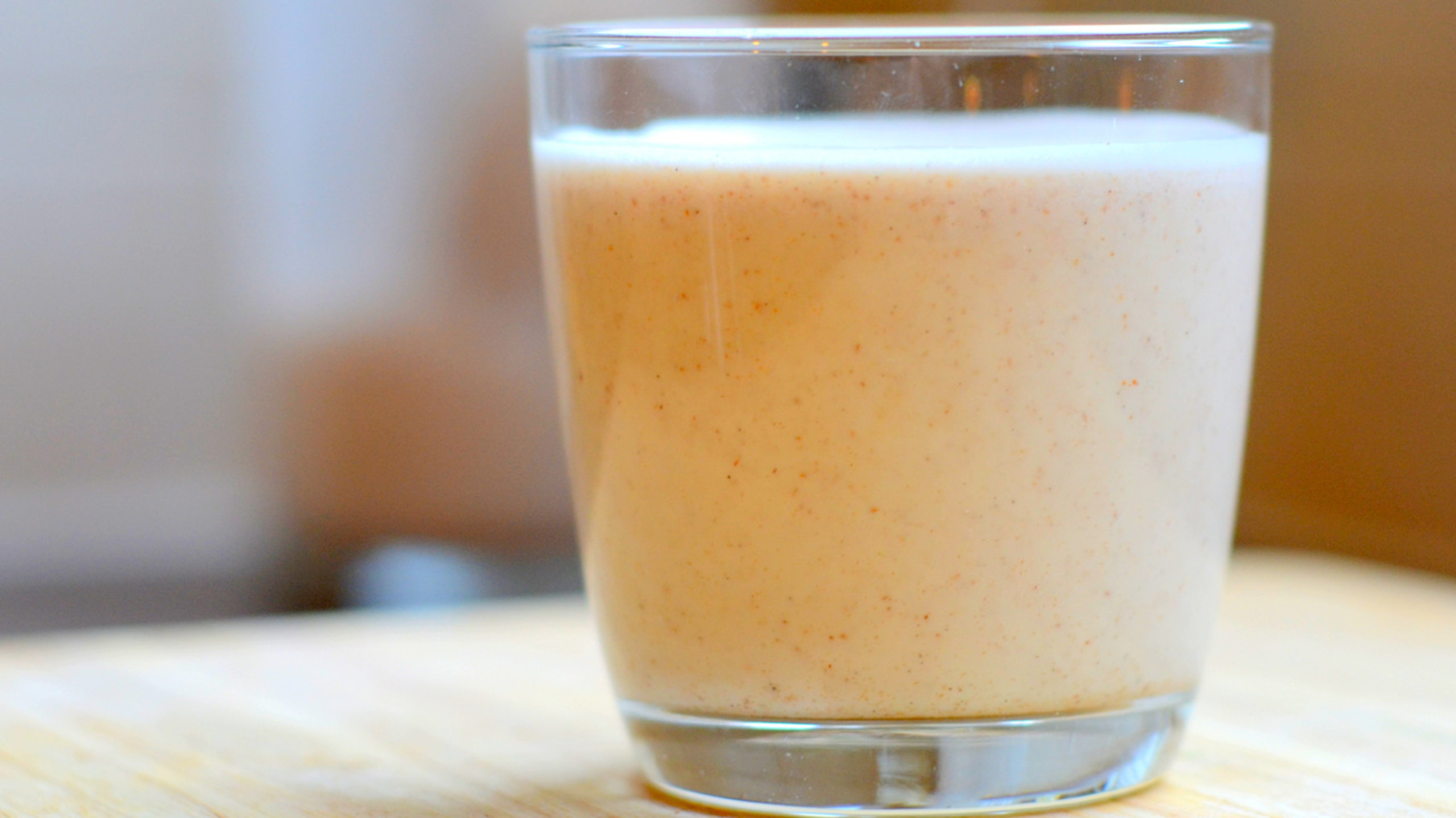 To prepare the almond nog, in a high–speed blender, combine all ingredients and blend until smooth.
