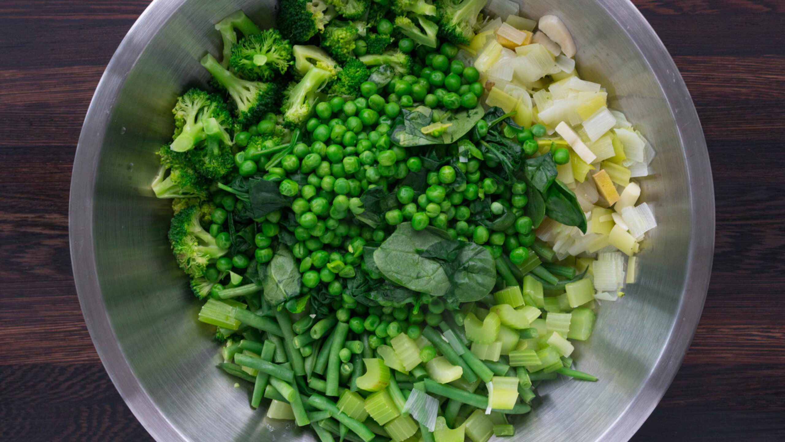 To cook the vegetables, simply steam them — from hardest to softest — until they are just soft and cooked through. Do not overcook the vegetables. If using garlic and ginger, add this to the pot in the very beginning.