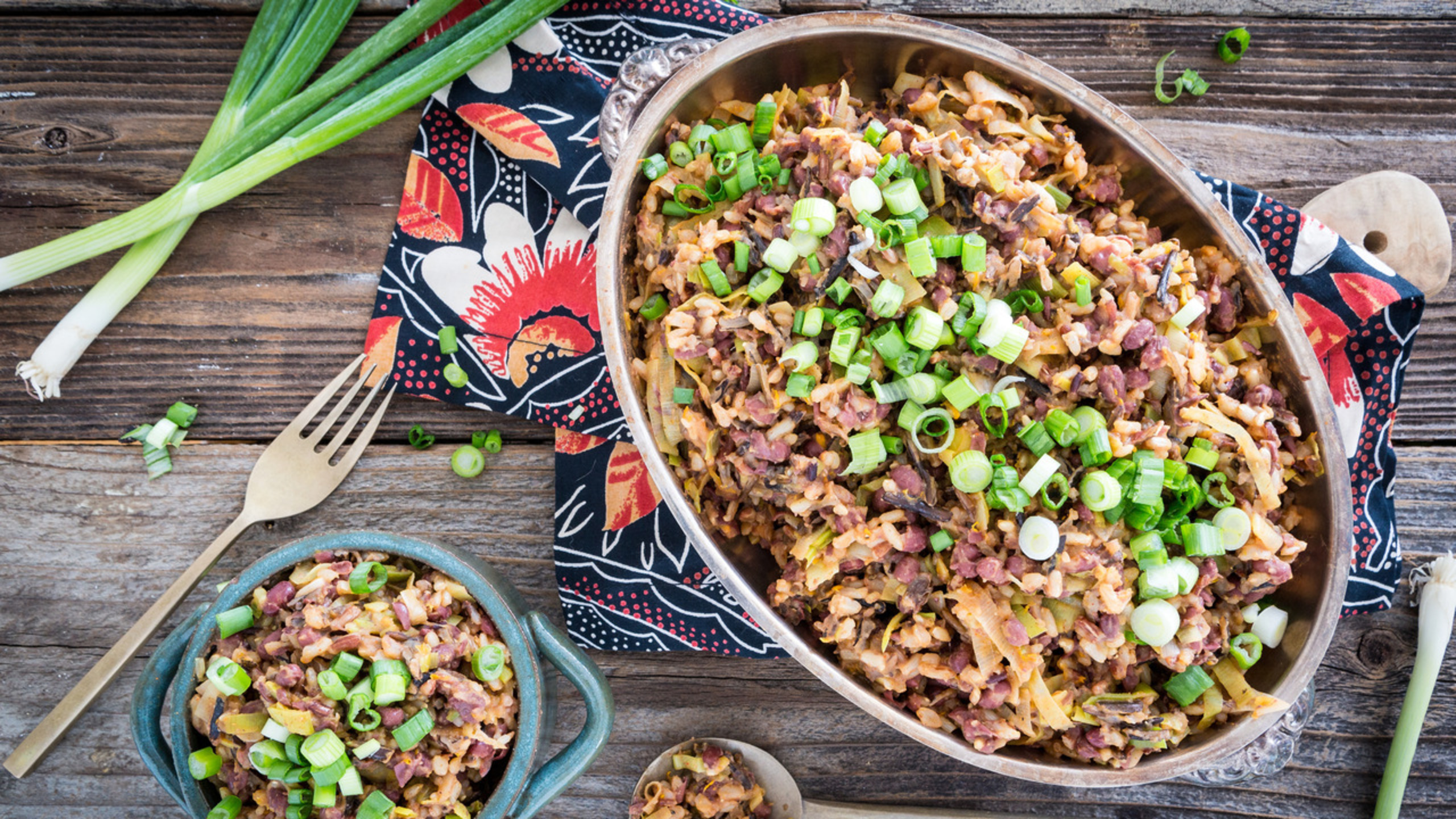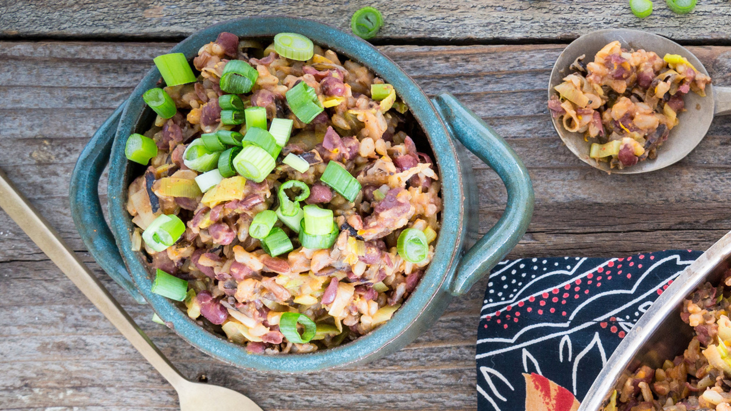 Add the garlic and cook for 2 minutes. Add the berbere spice and cook for 30 seconds. Stir in the wild rice, beans, and orange zest and season with salt and pepper.
