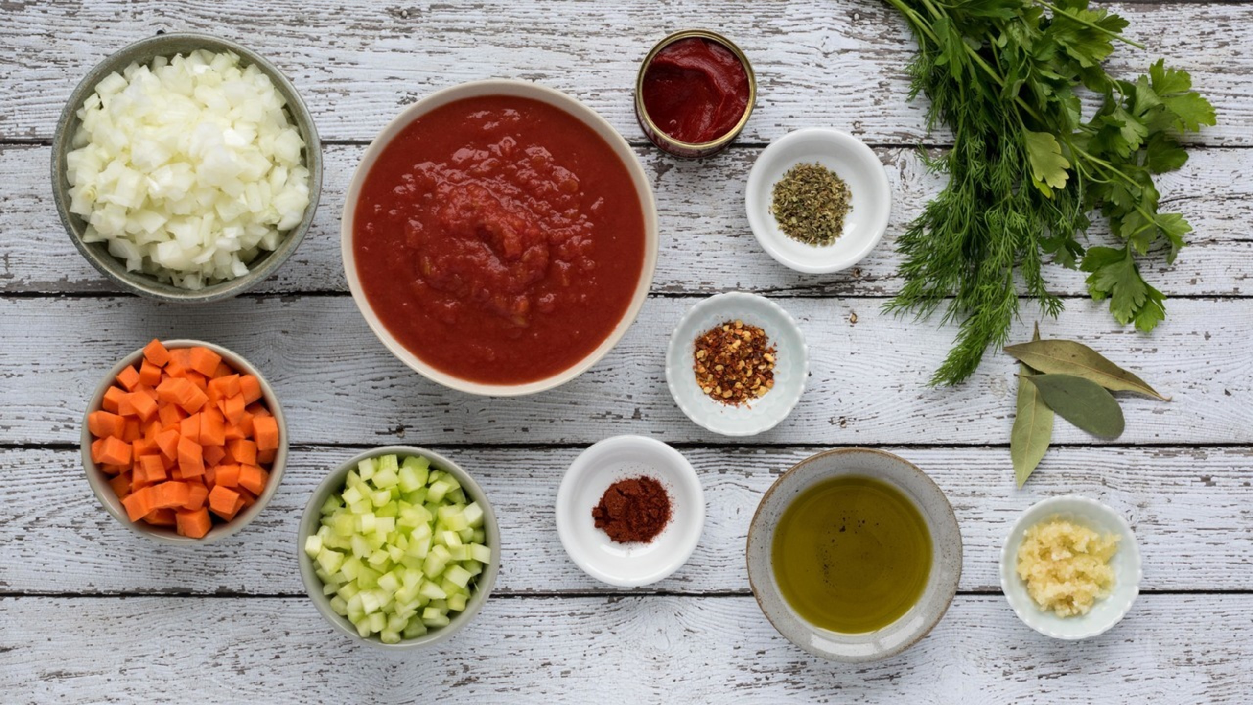 <strong*Note: For the tomatoes, we most often use canned tomatoes. For the best final consistency, pulse the diced tomatoes a few times in the food processor before using.
