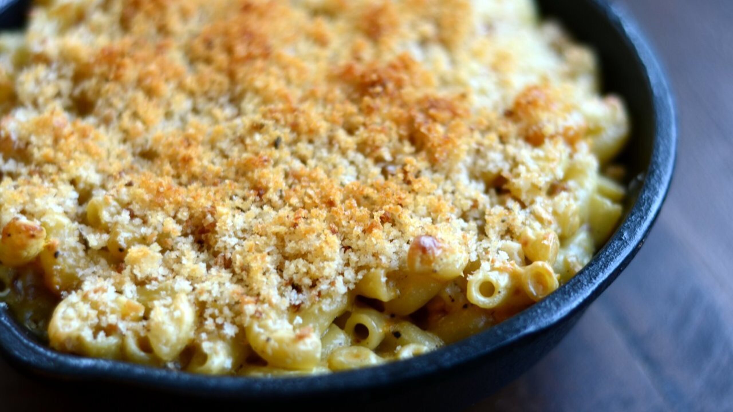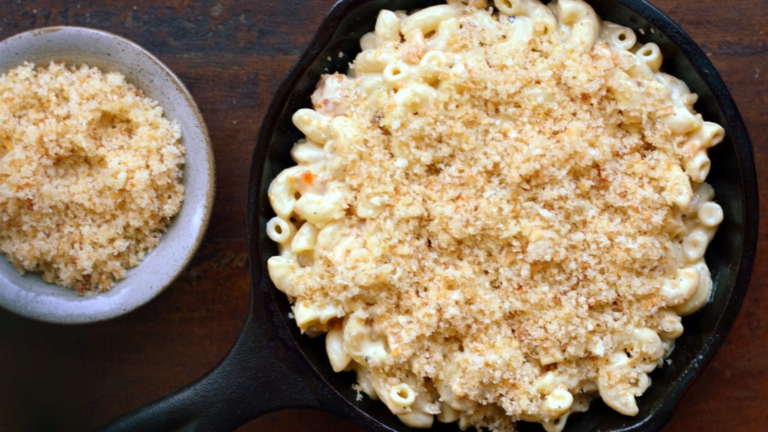 Add the melted butter to the breadcrumbs and toss to coat the crumbs in the butter. Top the macaroni with the breadcrumbs and bake for 15 to 20 minutes, or until the pasta has heated through and the breadcrumbs have formed a nice golden crust.