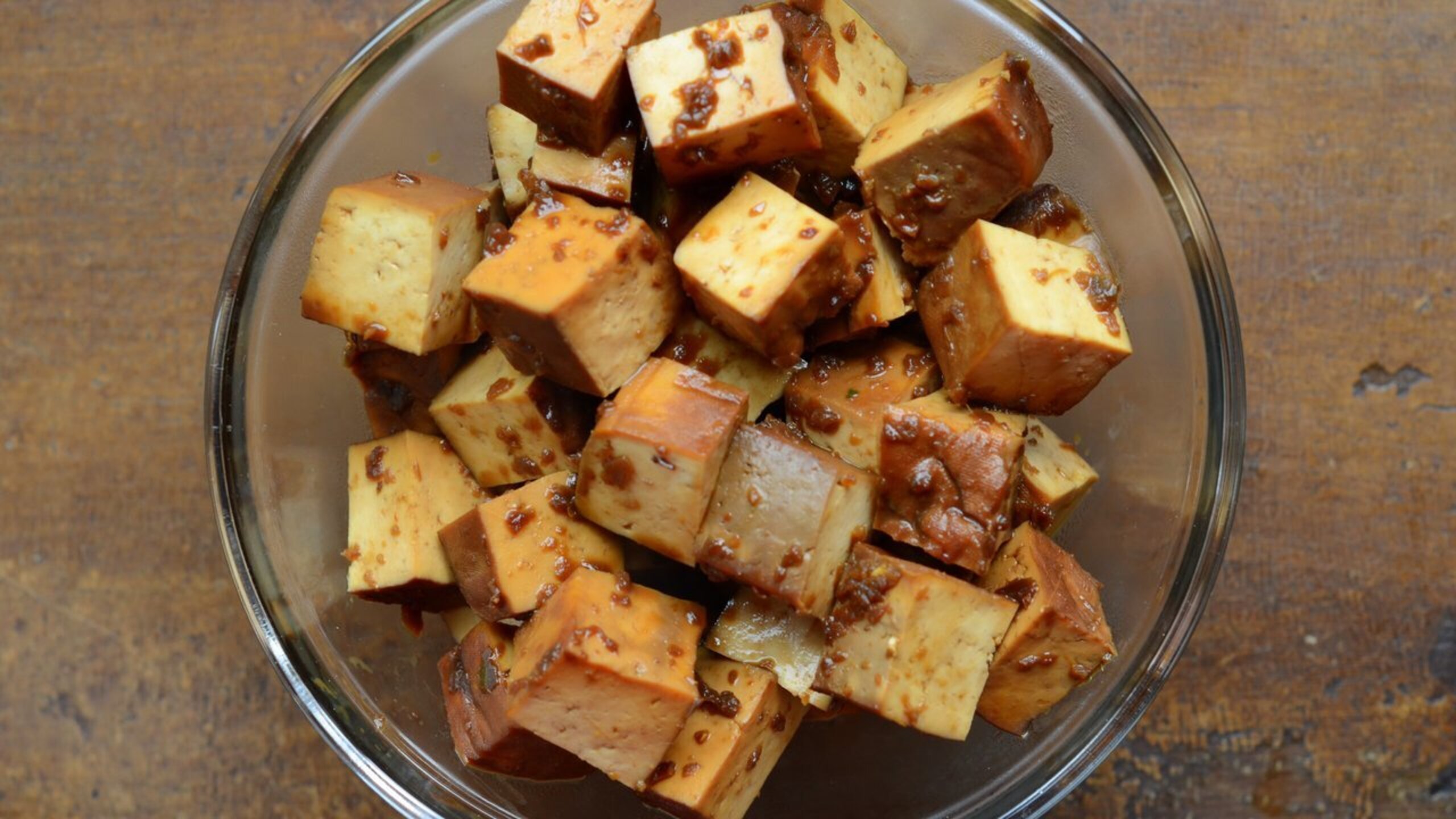 To marinate the tofu, mix half of the dressing with the tofu and let marinade for at least 30 minutes.