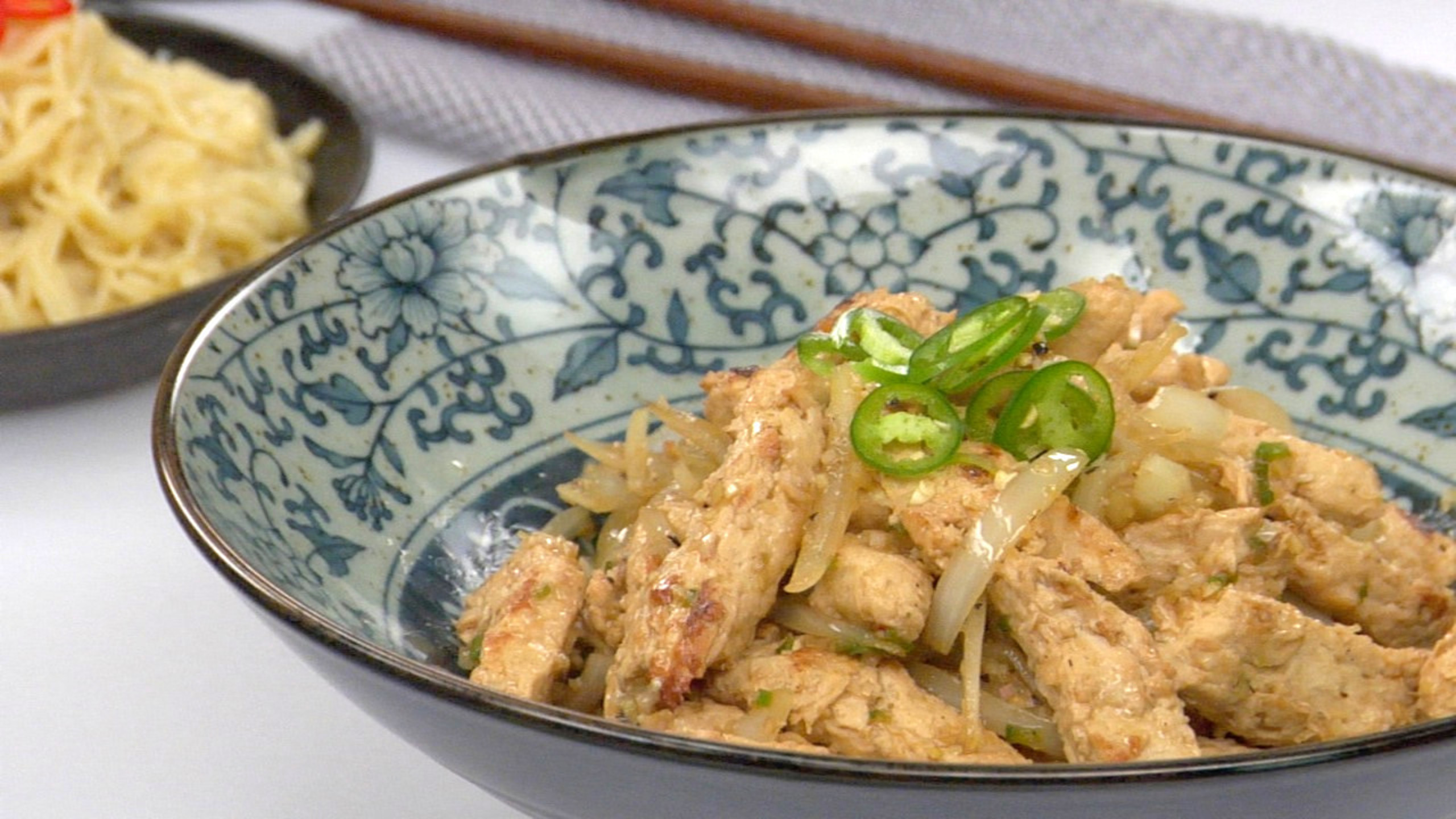 If desired, top with sliced chile and serve with your favorite noodle or rice dish.