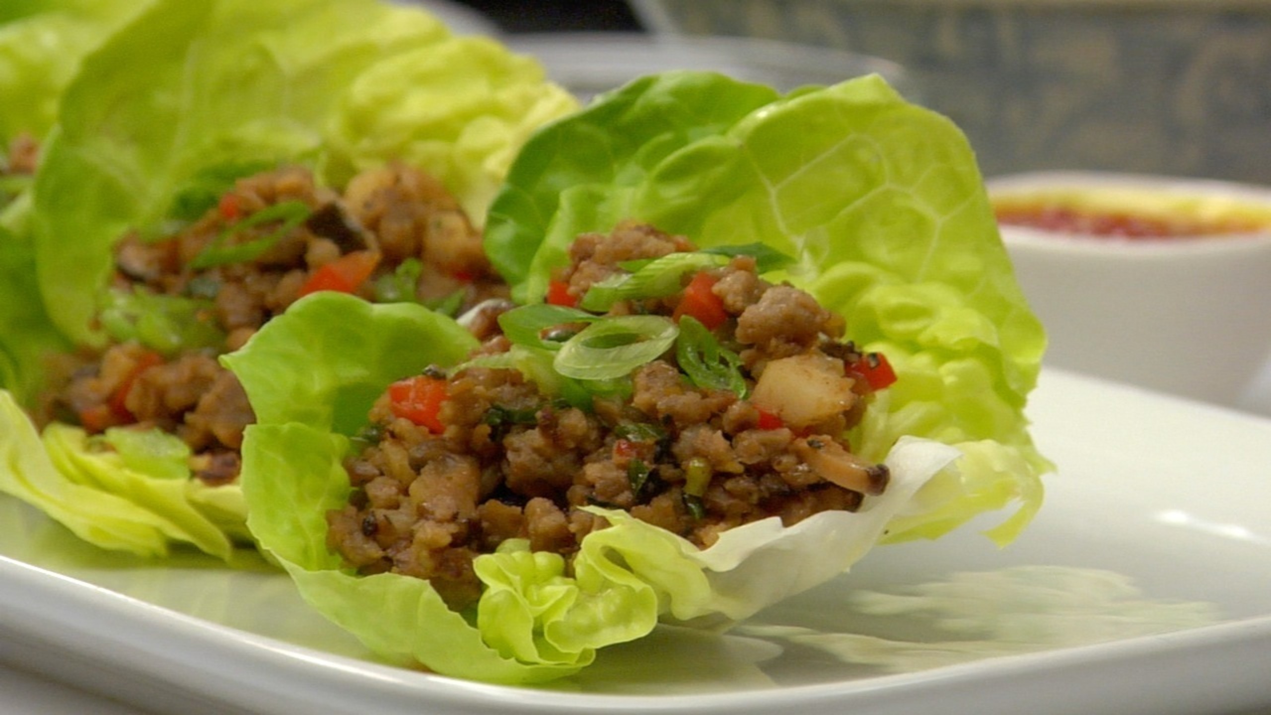 To serve the lettuce wraps, scoop a bit of the mixture into a lettuce cup and top with some of the green onions. Serve with additional sambal, if desired.