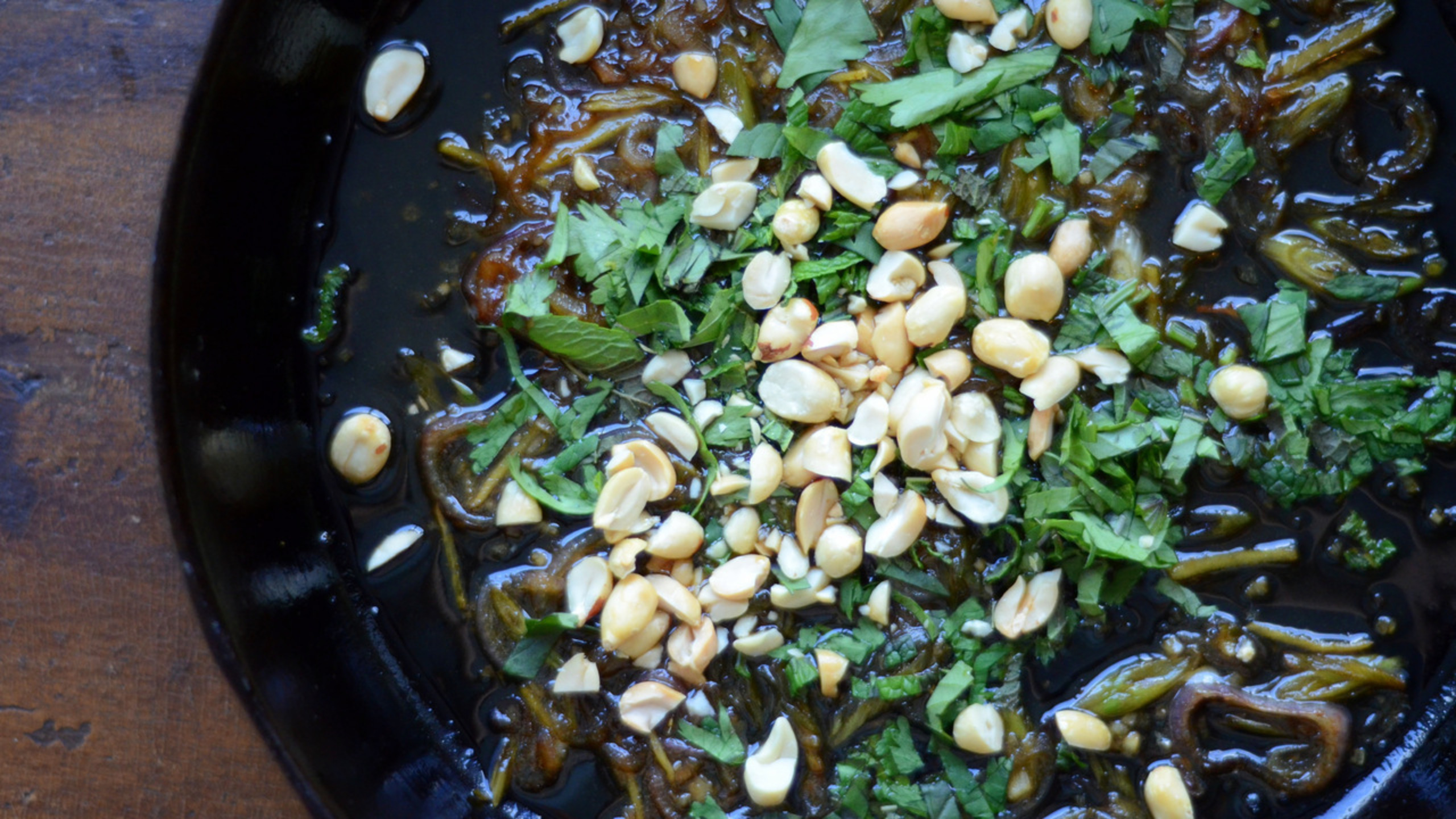 Once done, remove from the heat and add the fresh herbs and peanuts. Toss to combine and taste for seasoning.