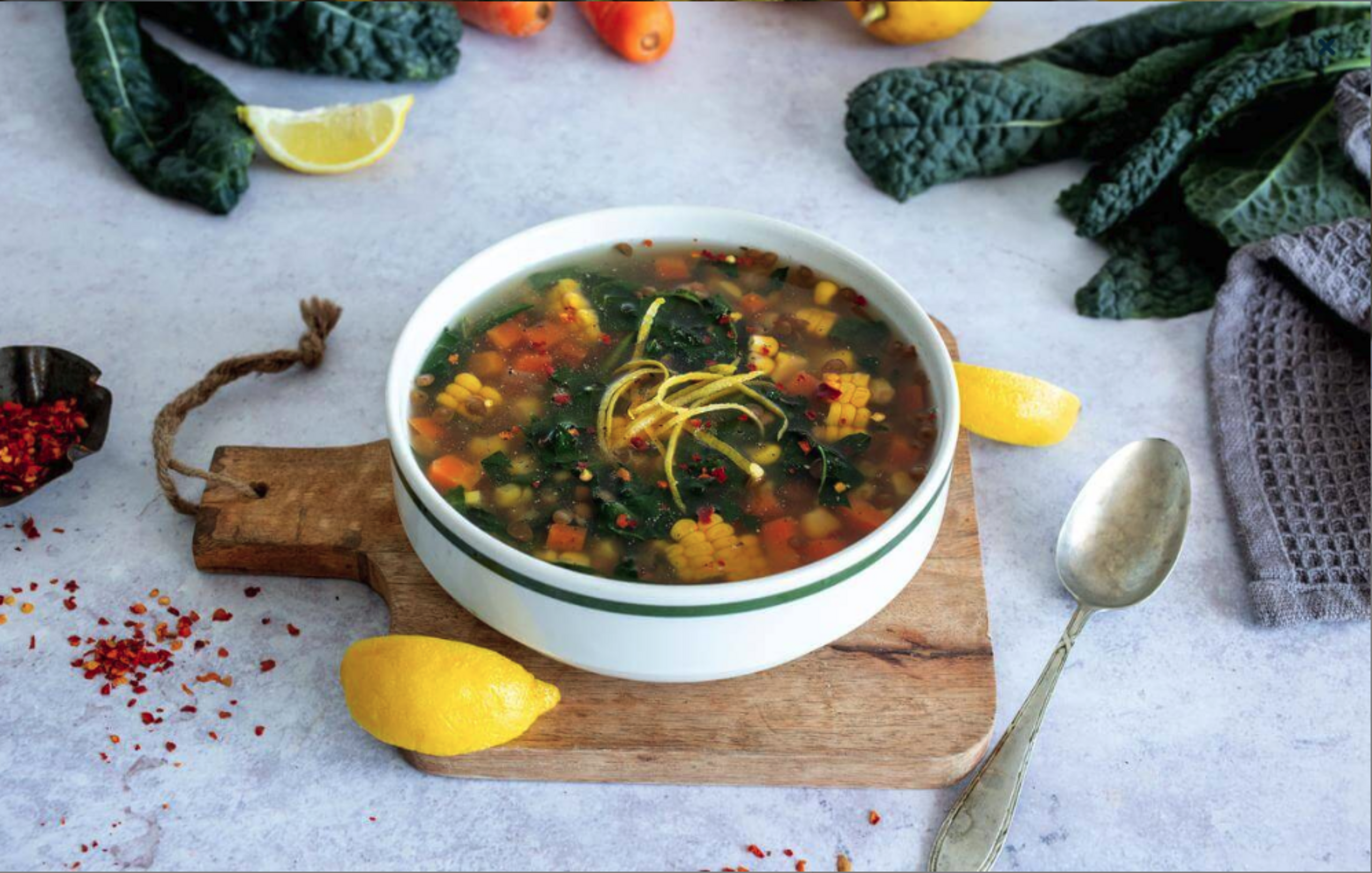 In a stockpot over high heat, combine vegetable broth, lentils, carrots, onions, curry powder, thyme, pepper flakes, and 3 cups water. Bring to a boil.