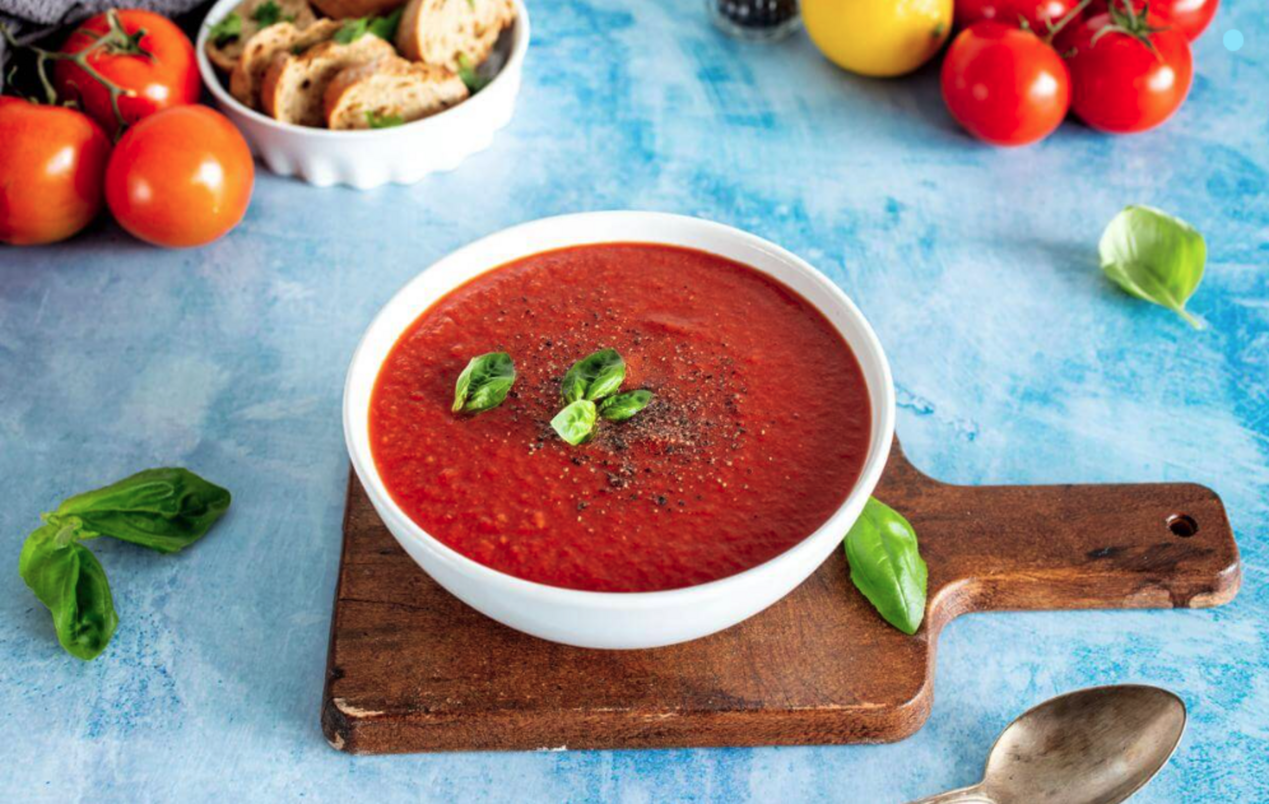 Add grilled tomatoes to soup and cook until all vegetables are very tender, 5 minutes. Remove and discard bay leaf. Using an immersion blender, purée soup until very smooth (or purée in batches in a high-powered blender or food processor, then return to pot; see tip). Stir in basil and lemon juice. Season with salt and pepper to taste.