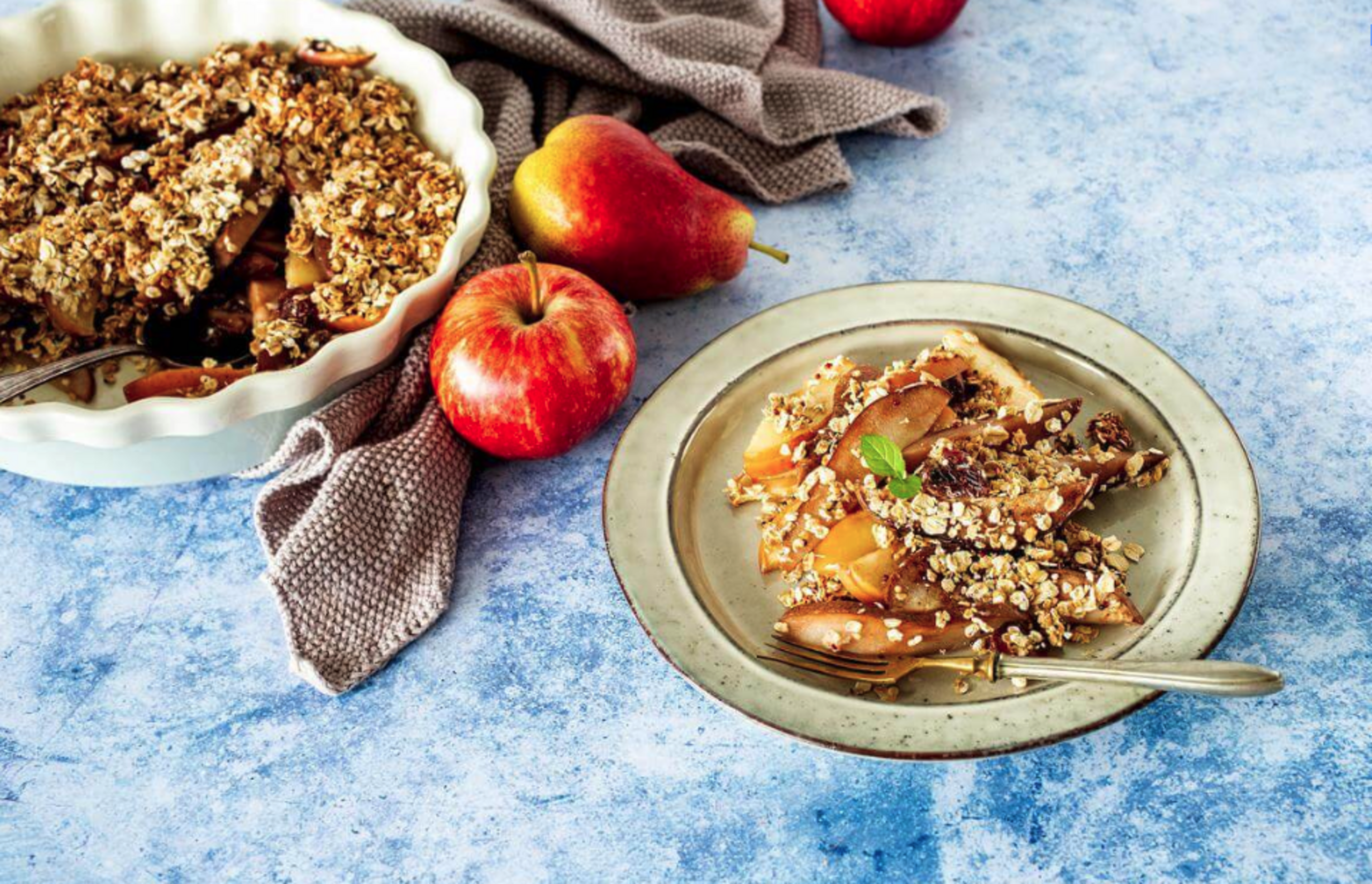 Place apples, pears, and dates in a 2-quart baking dish.