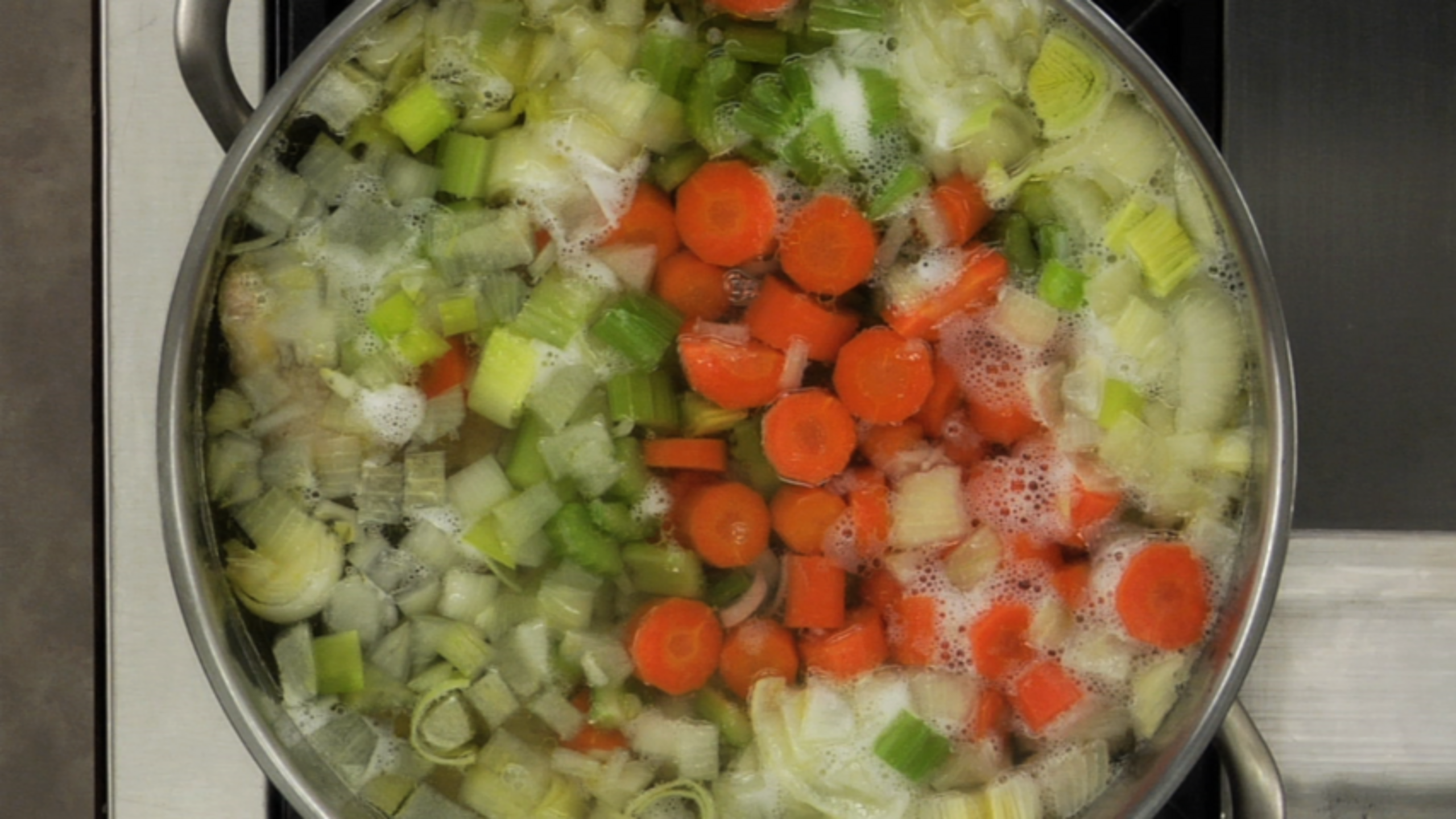 Here’s a recipe for fresh vegetable stock that can be used in a number of recipes from this point forward in the course.