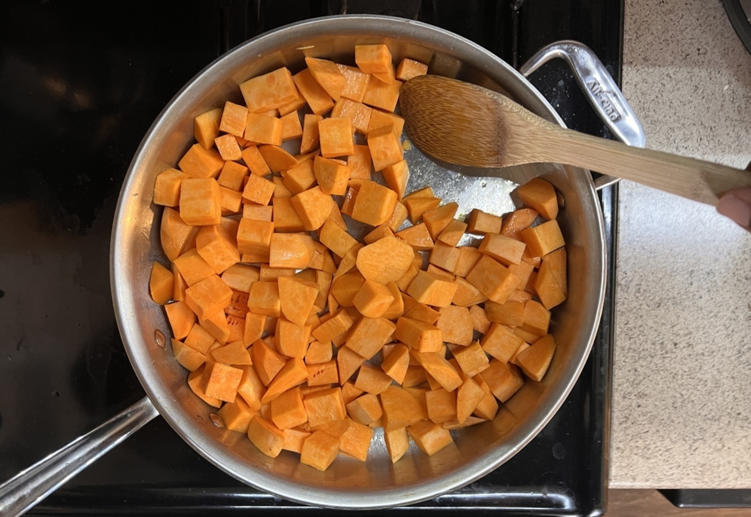 Add sweet potatoes and stir to coat.