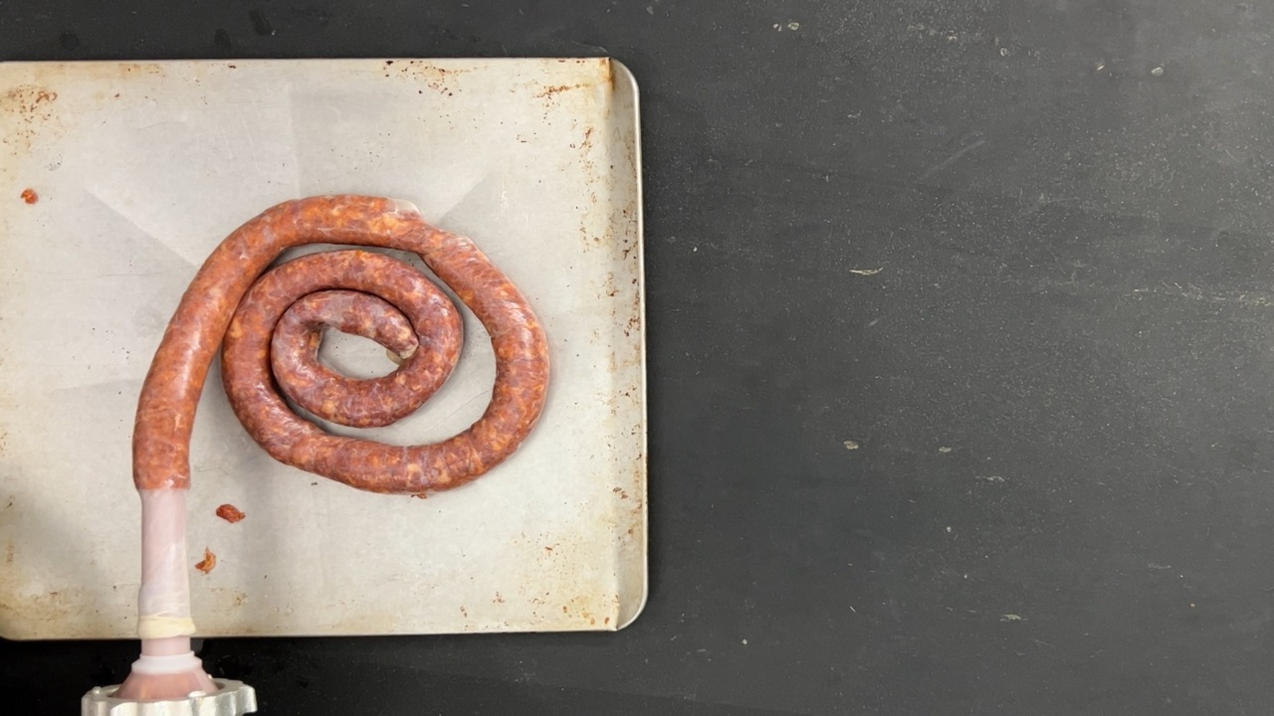 Chill the sausage in a covered container in the refrigerator until you’re ready to stuff and link the sausage.