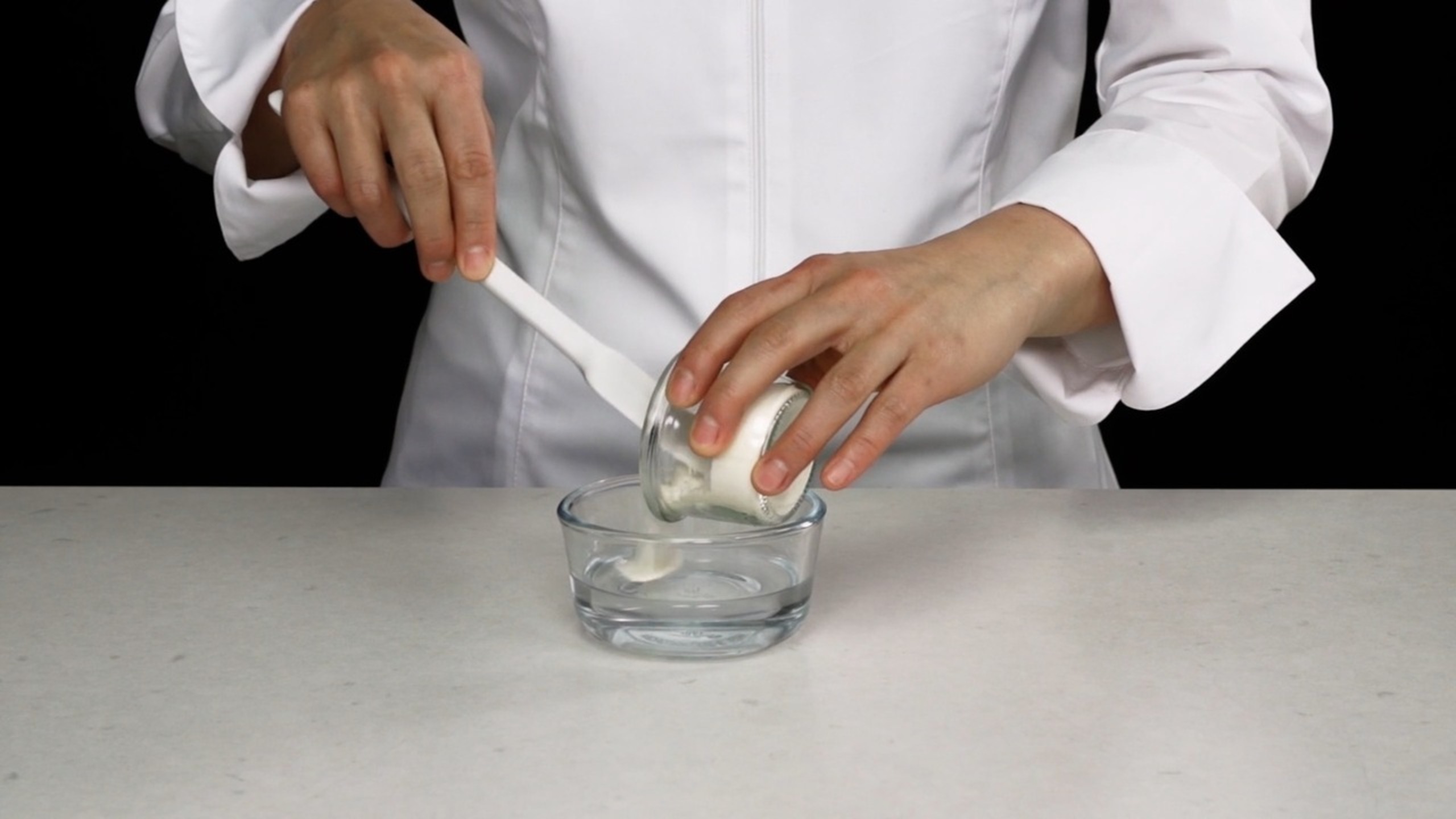 Add dried egg white powder into the water and stir it well using a spatula. Cover it with a lid and allow it to fully hydrate for at least 20 minutes.