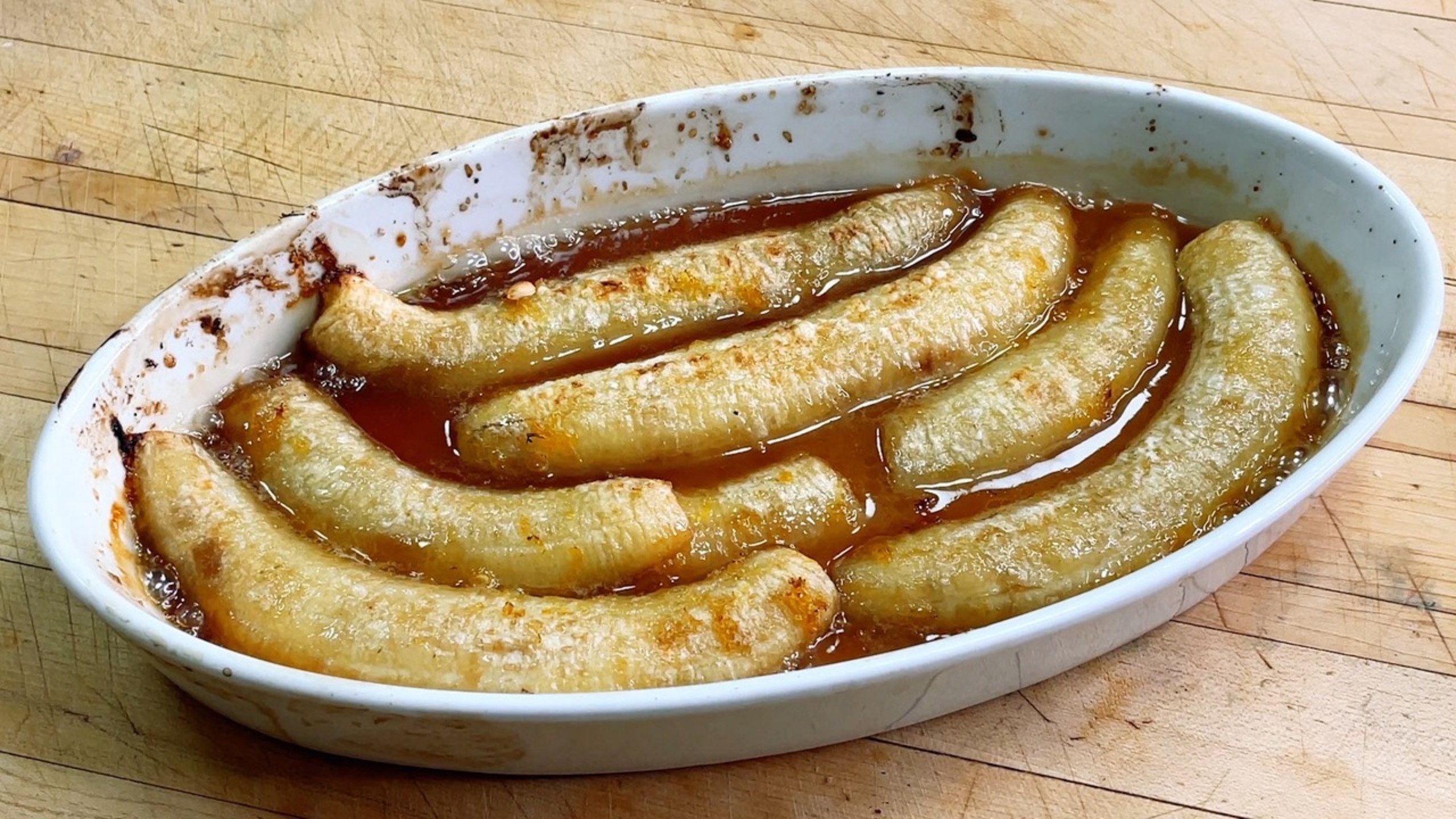 - 3 bananas, split in half lengthwise