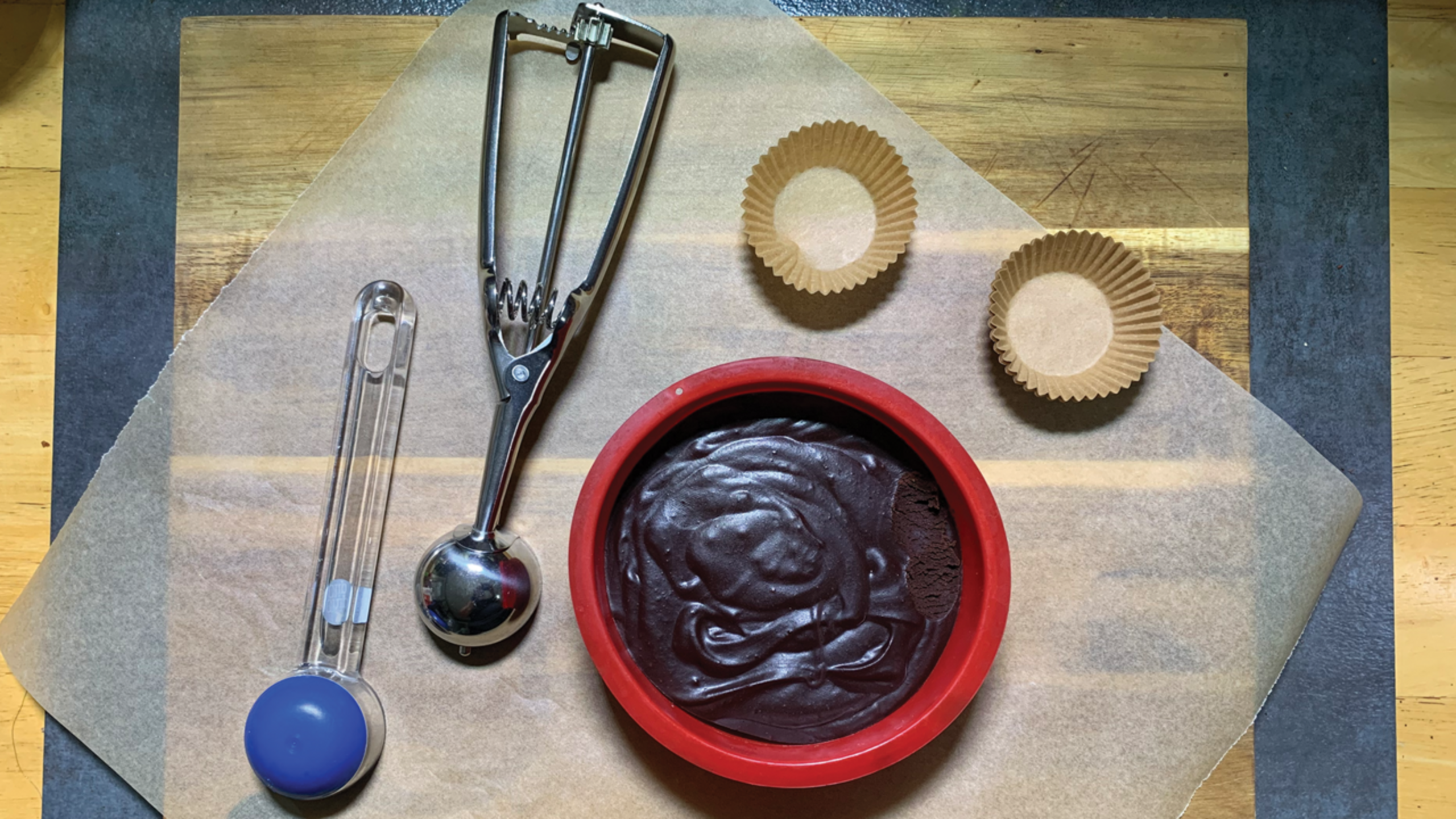 Prepare and portion the mise en place. A wooden spoon works best for stirring the melted chocolate.