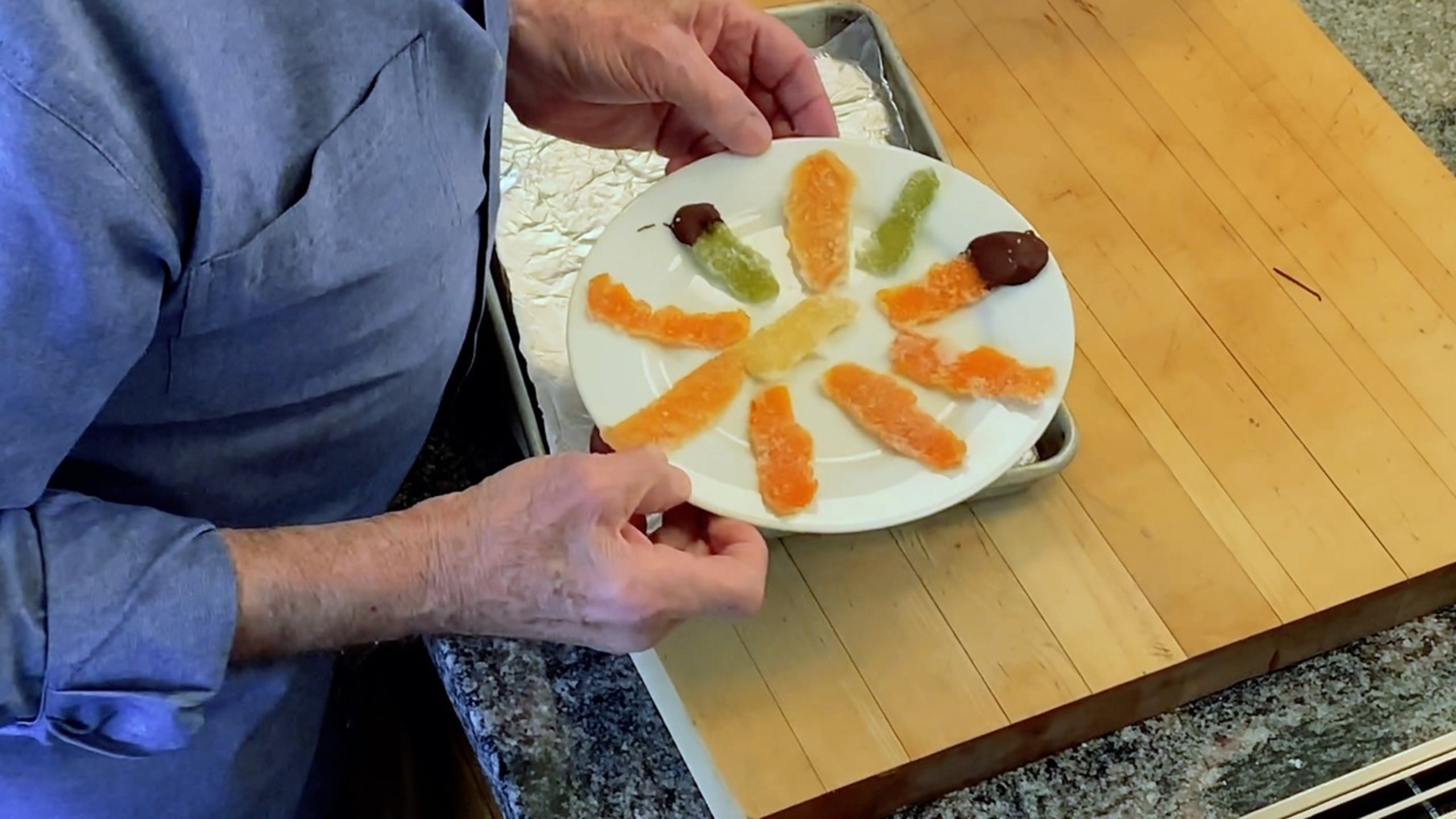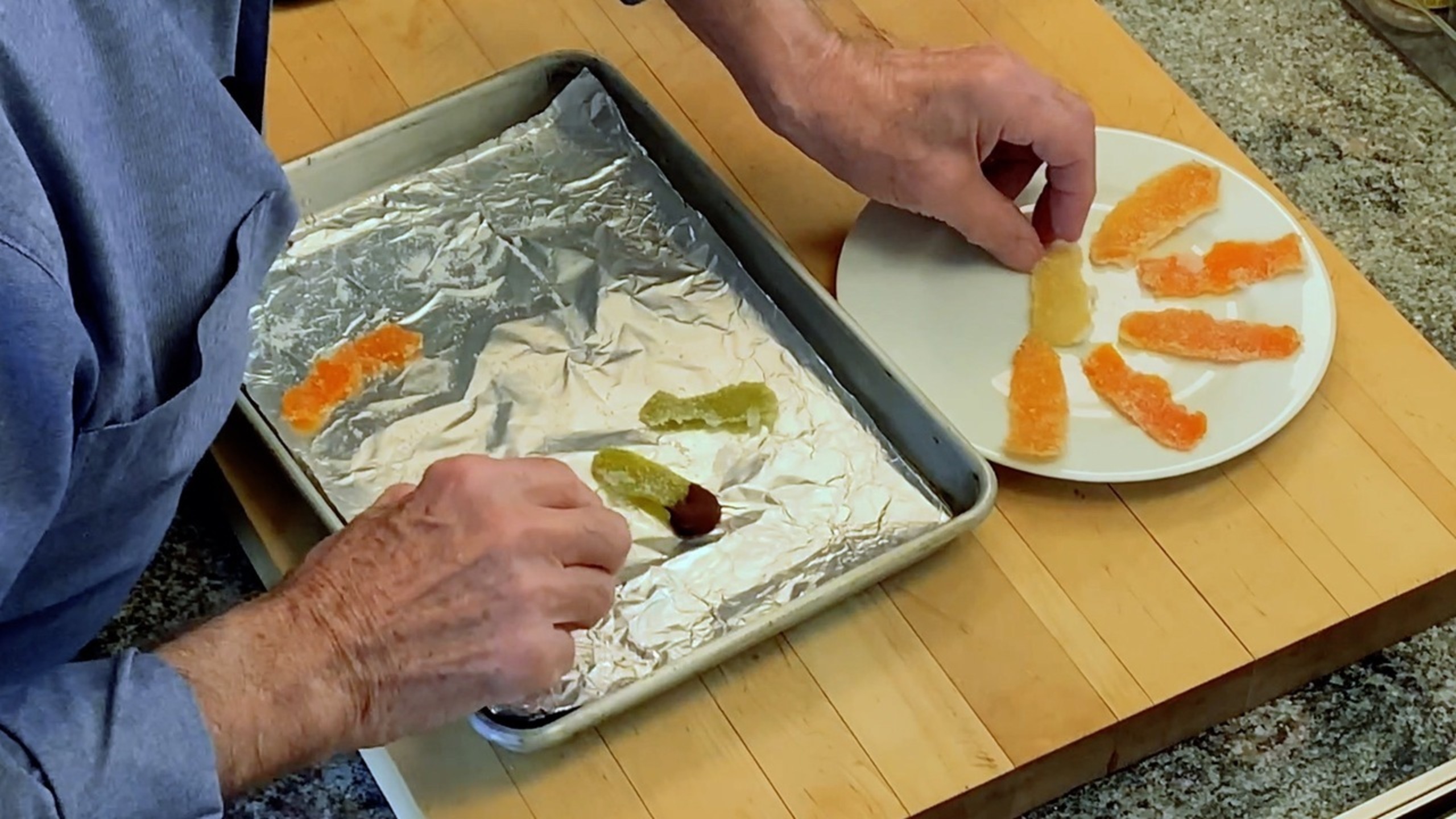 For an added garnish, you can dip the ends of some of the peel into melted chocolate. Set the dipped peel on a baking sheet lined with nonstick foil and refrigerate until set, 20 to 30 minutes.
