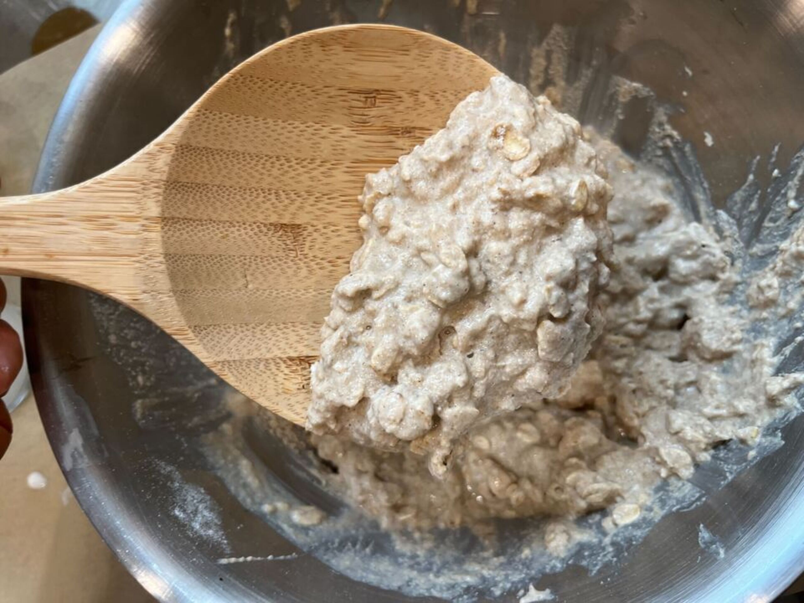 Allow the batter to rest 5-10 minutes so the oat flour can absorb the liquid. This will improve the texture without over mixing.