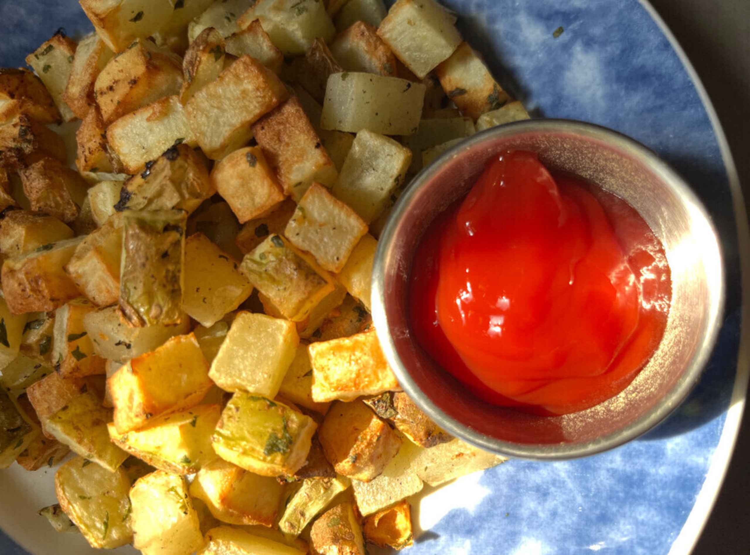 CHEF NOTES: Make certain that no extra liquid is added to the air-fryer basket, as this will cause the potatoes to steam rather than “fry.”