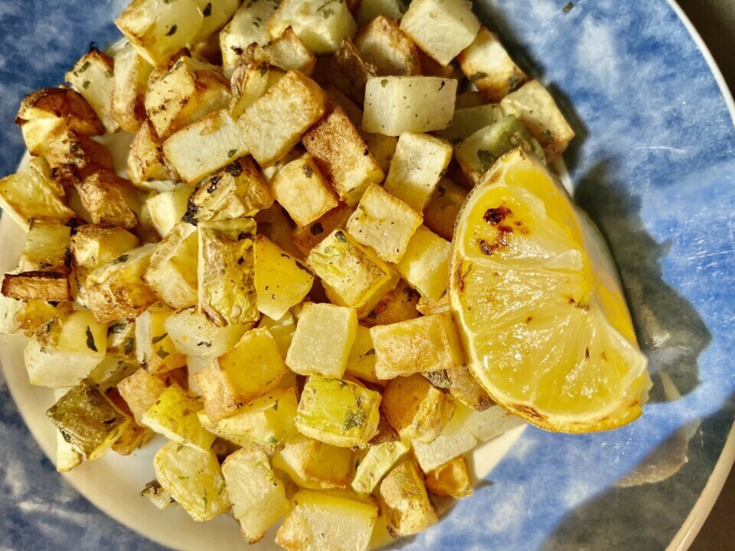 Season: In a large bowl, toss potatoes with aquafaba or lemon juice. Add all spices and toss again until well-coated.