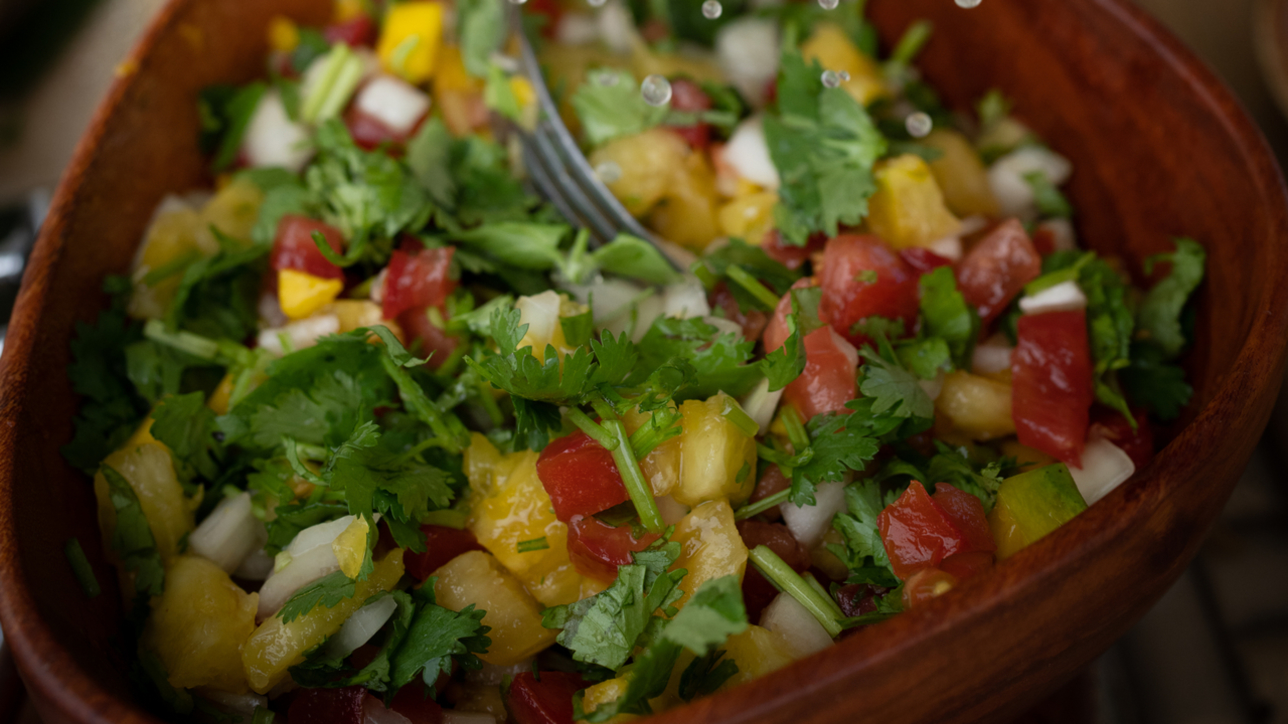 Garnish with the fresh herbs and pickled jalapeño, as desired, then top with about 2 tablespoons of the red onion shave ice.