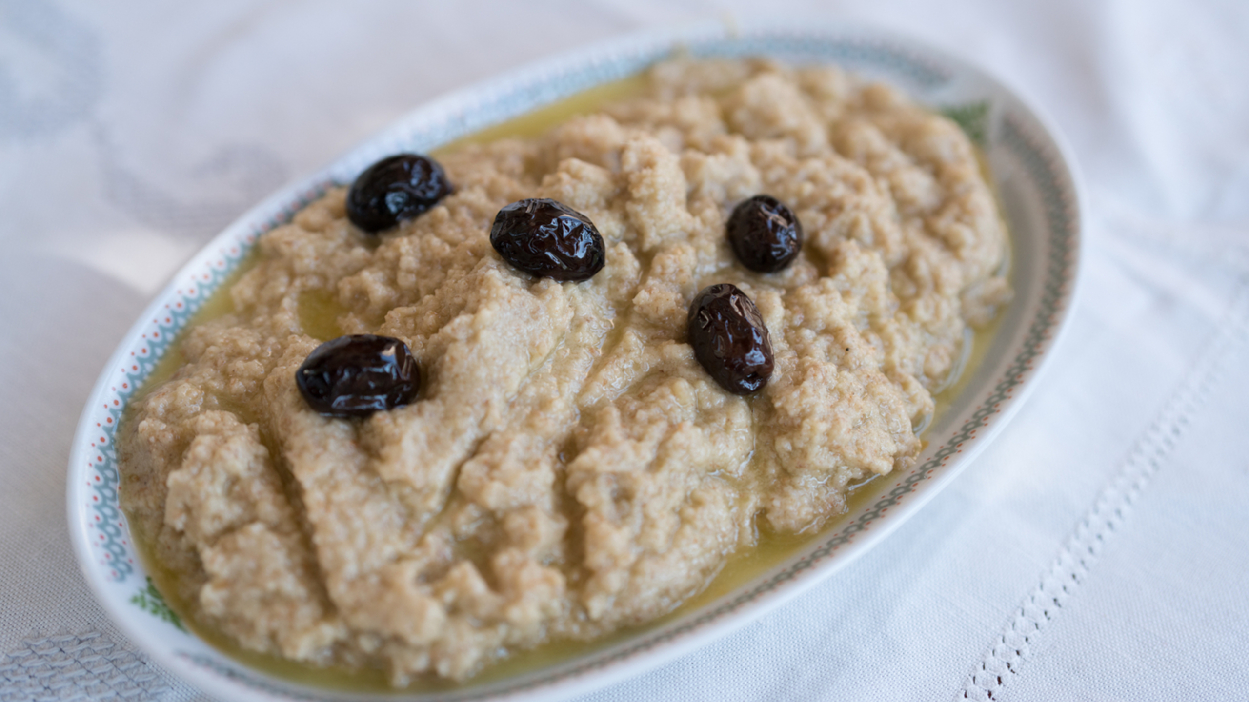 Add salt to taste before serving. Top with olives, if desired.