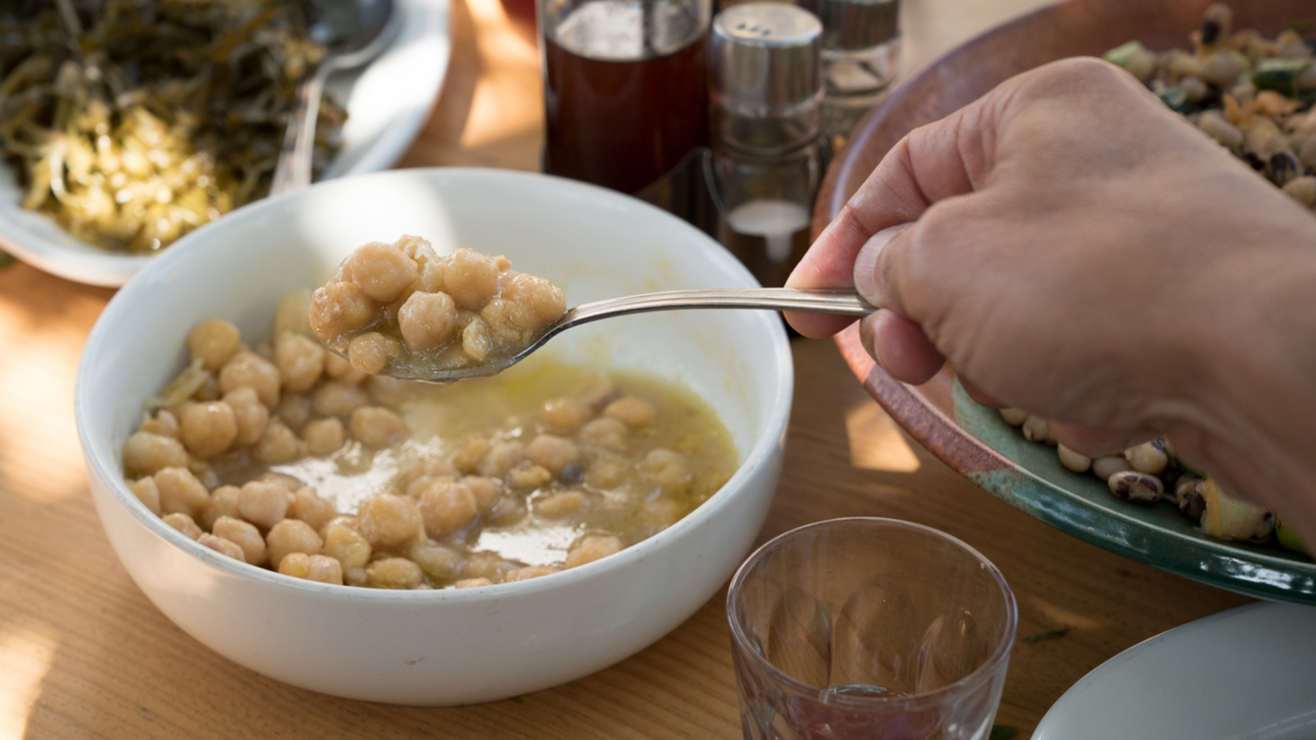 - 1 pound dried chickpeas, soaked overnight, rinsed, and peeled (or four 15-ounce cans low-sodium chickpeas, drained)