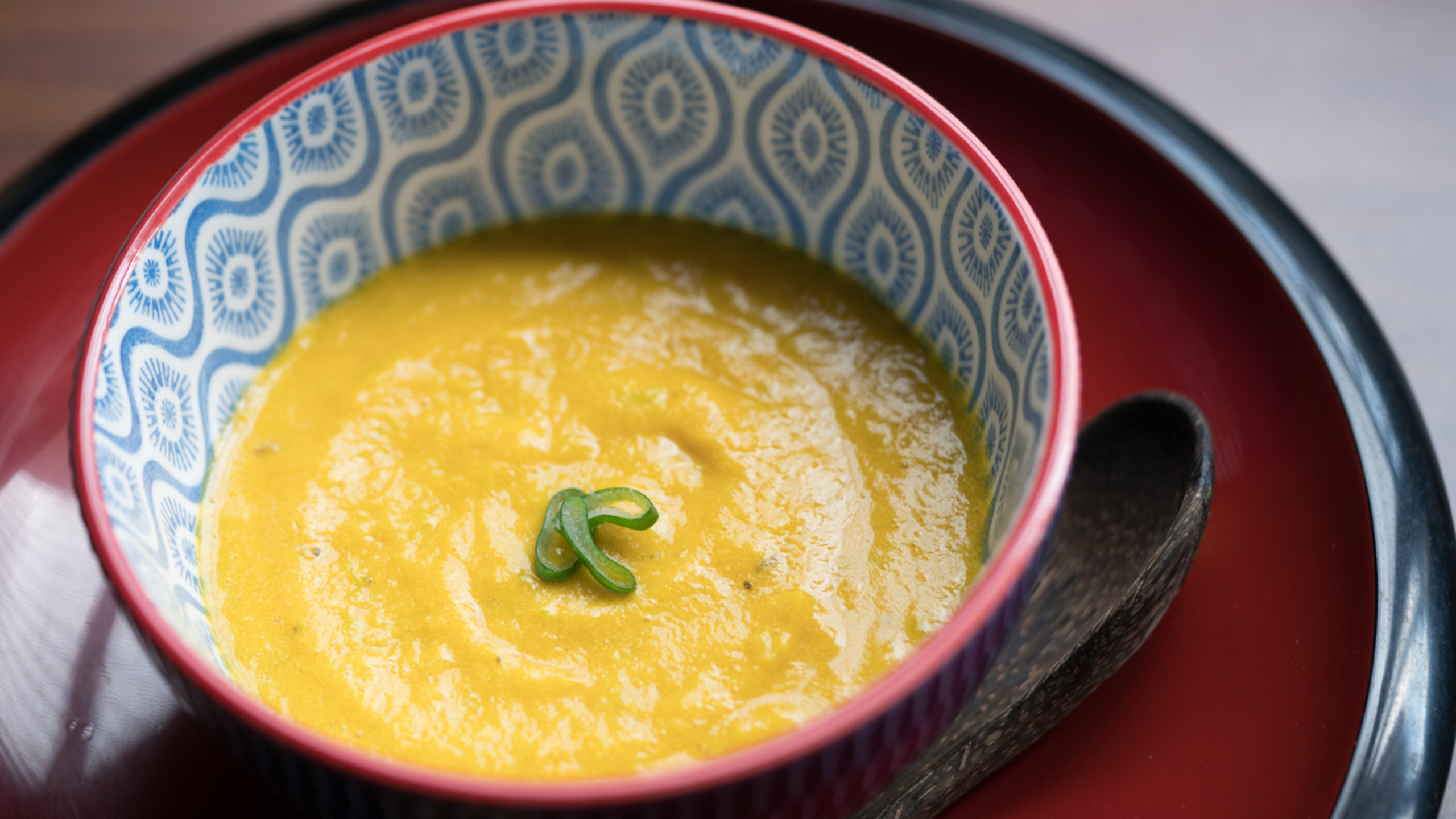 Add soy milk, steamed squash, and spices and simmer for 15 minutes.