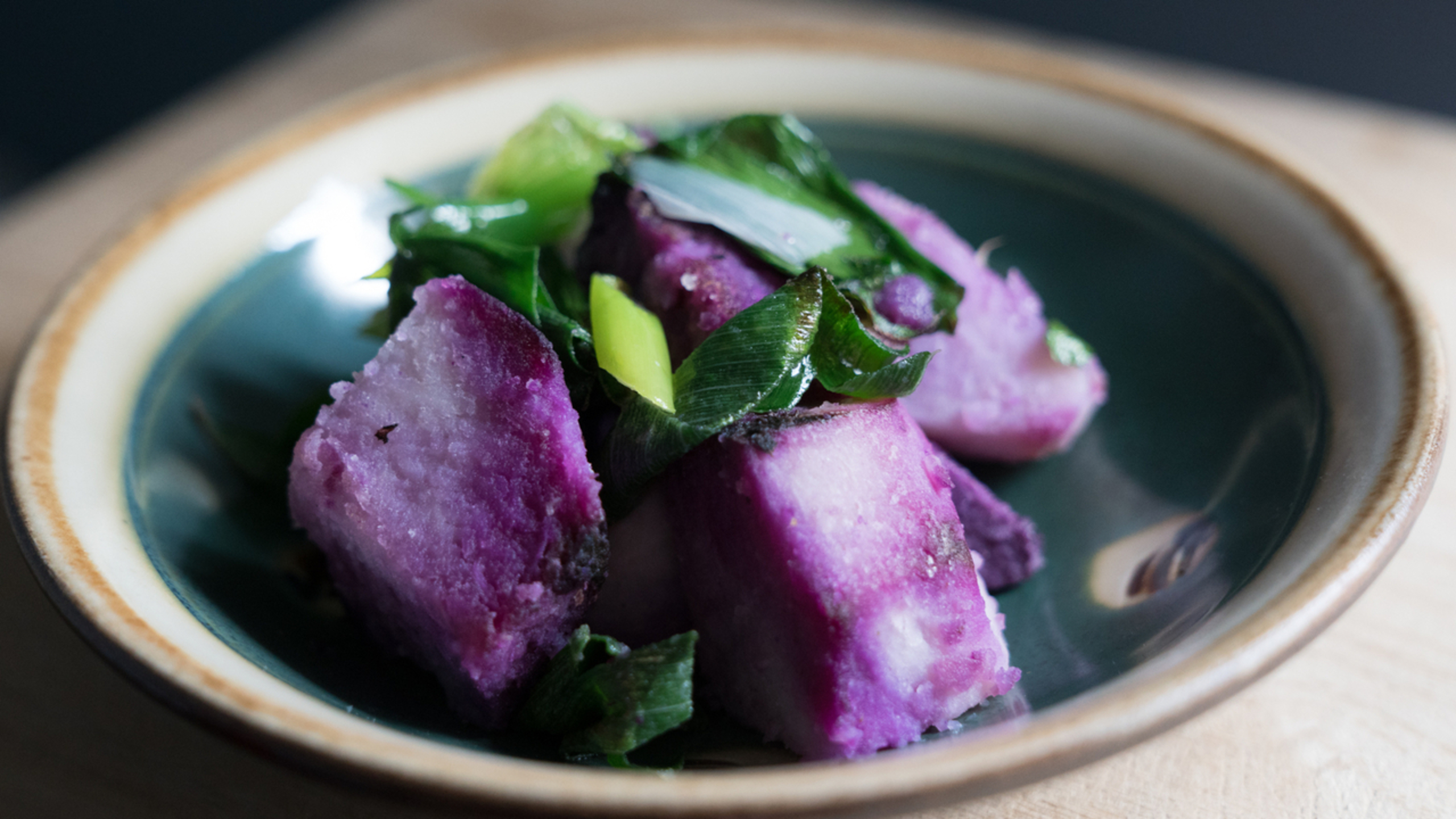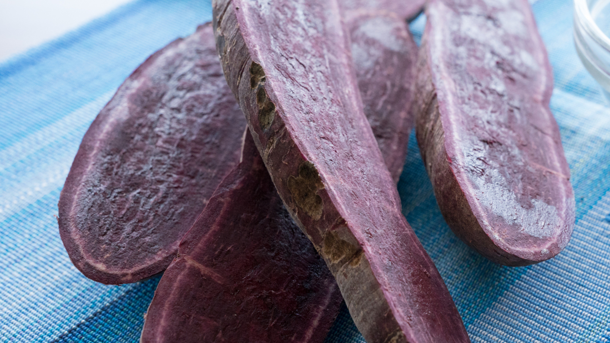 One of the pillars of the Okinawan diet, Okinawan imo is a supercharged purple sweet potato, a cousin of the common yellow-orange varieties that has been an island staple since the 17th century. Despite its saccharine flavor, it does not spike blood sugar as much as a regular white potato. Like other sweet potatoes, it contains an antioxidant called sporamin, which possesses a variety of potent anti aging properties. The purple version contains higher levels than its orange and yellow cousins.