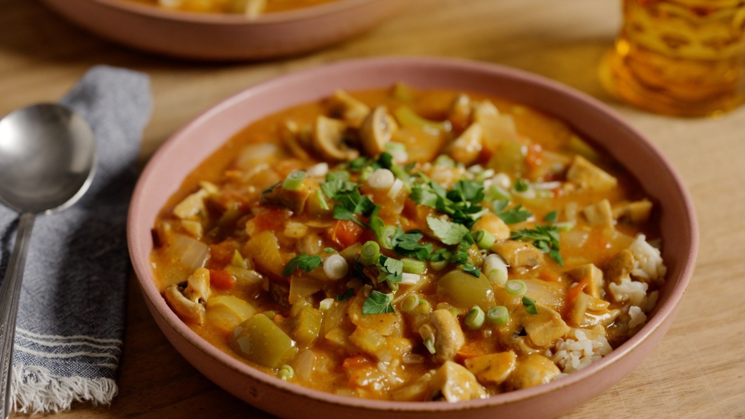 To make the sauce, in a large saucepan, melt the vegan butter over medium-high heat. Add the onion, celery, and bell pepper, and cook, stirring occasionally, until the vegetables are tender, about 10 minutes.