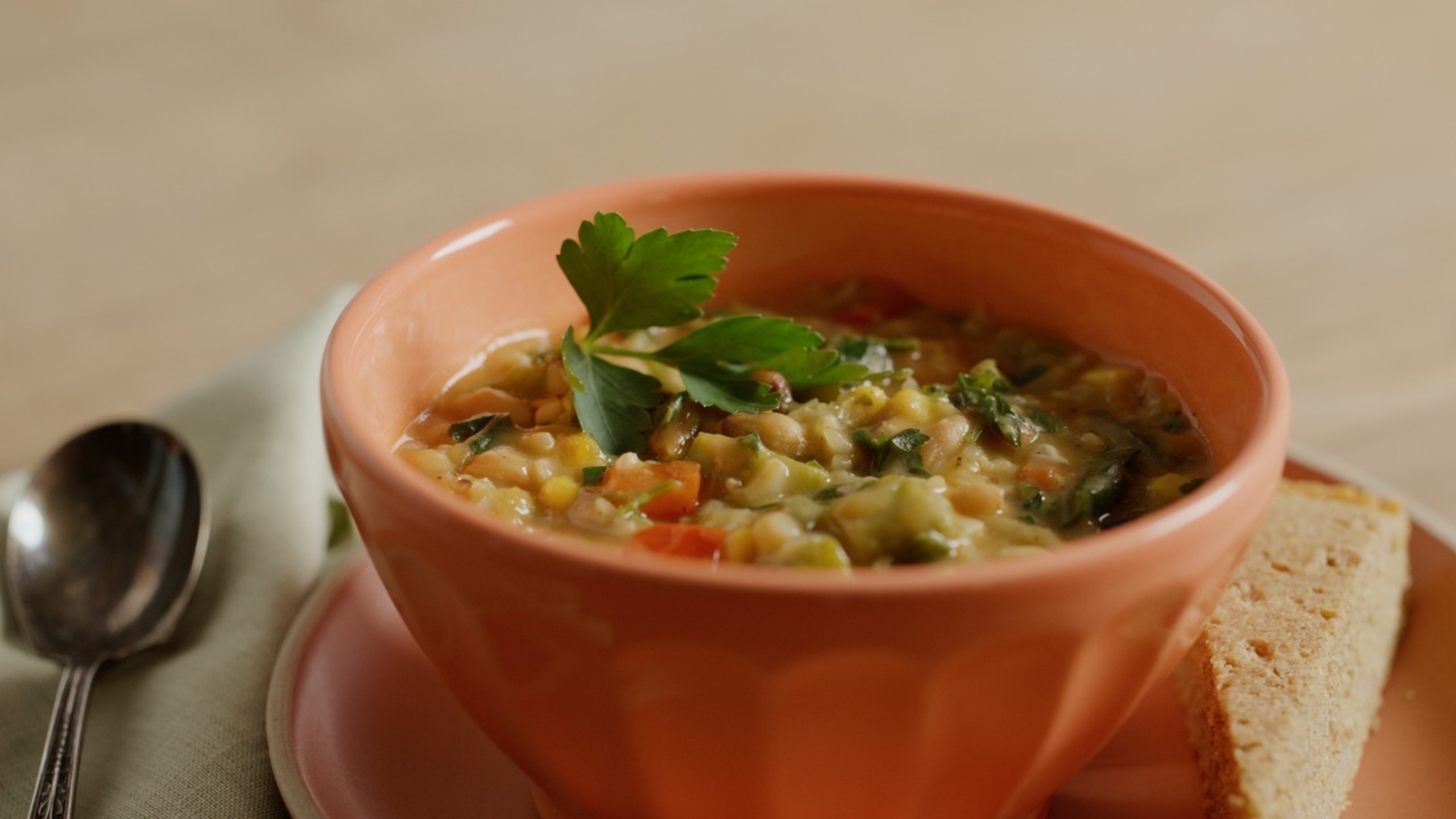 Add spinach and parsley and continue to simmer for another 5 minutes. Remove bay leaves and add salt and pepper to taste.