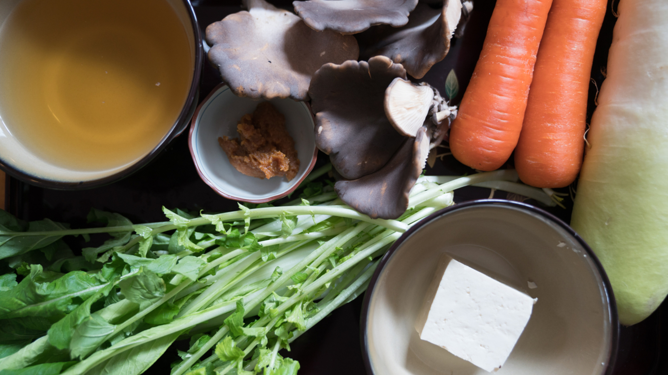 Add kombu and mushrooms to pot and let simmer on low for 15-20 minutes. Strain and reserve broth.