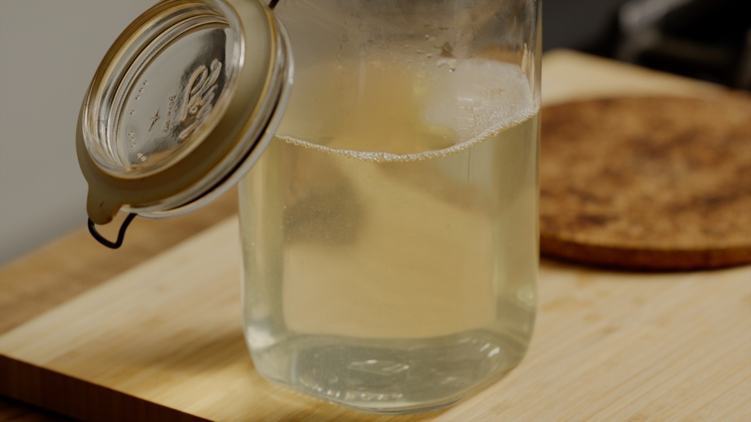 Wipe off white layer on kelp with dry cloth. Soak kombu overnight in water.