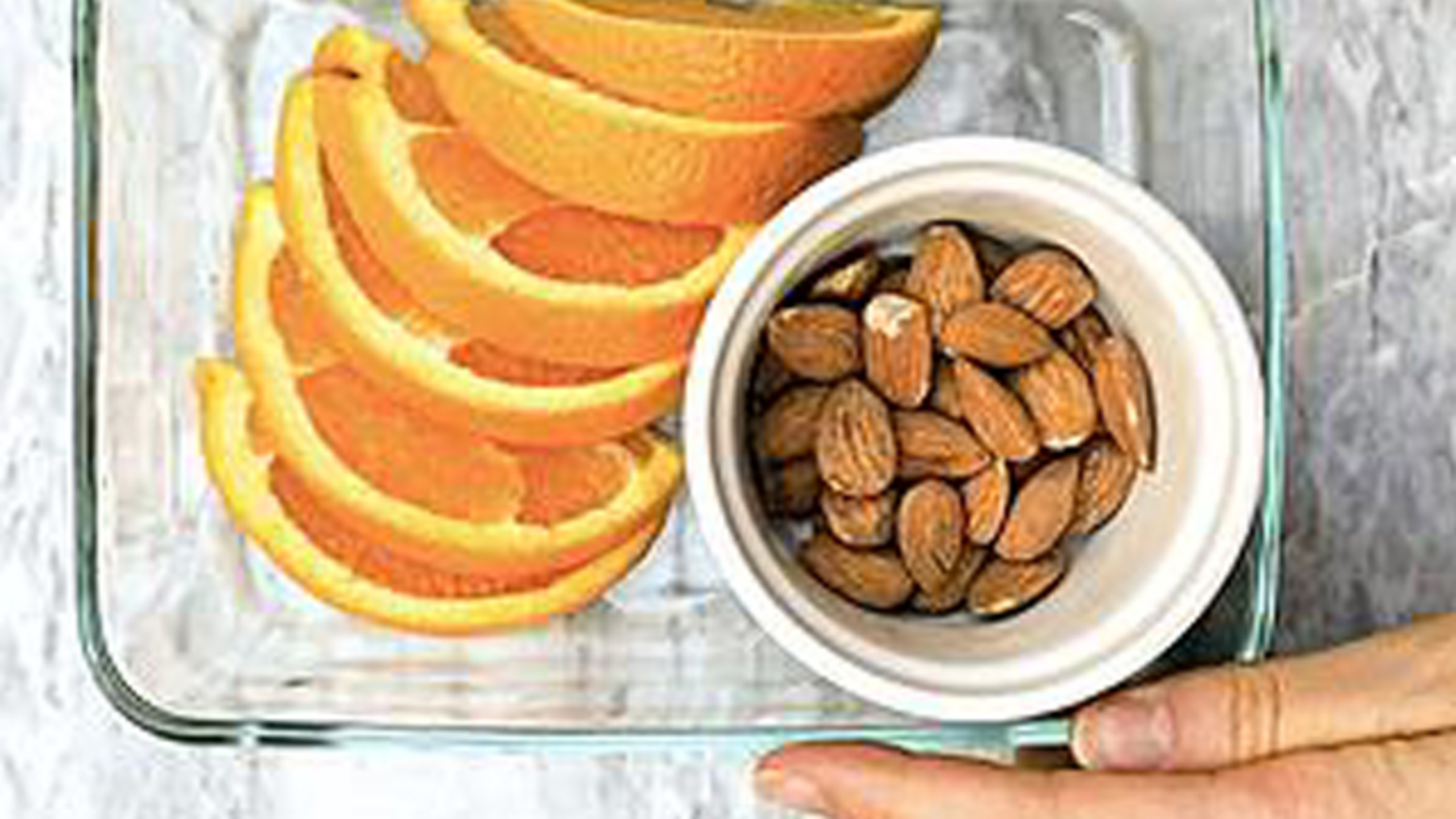 Slice oranges and combine with almonds