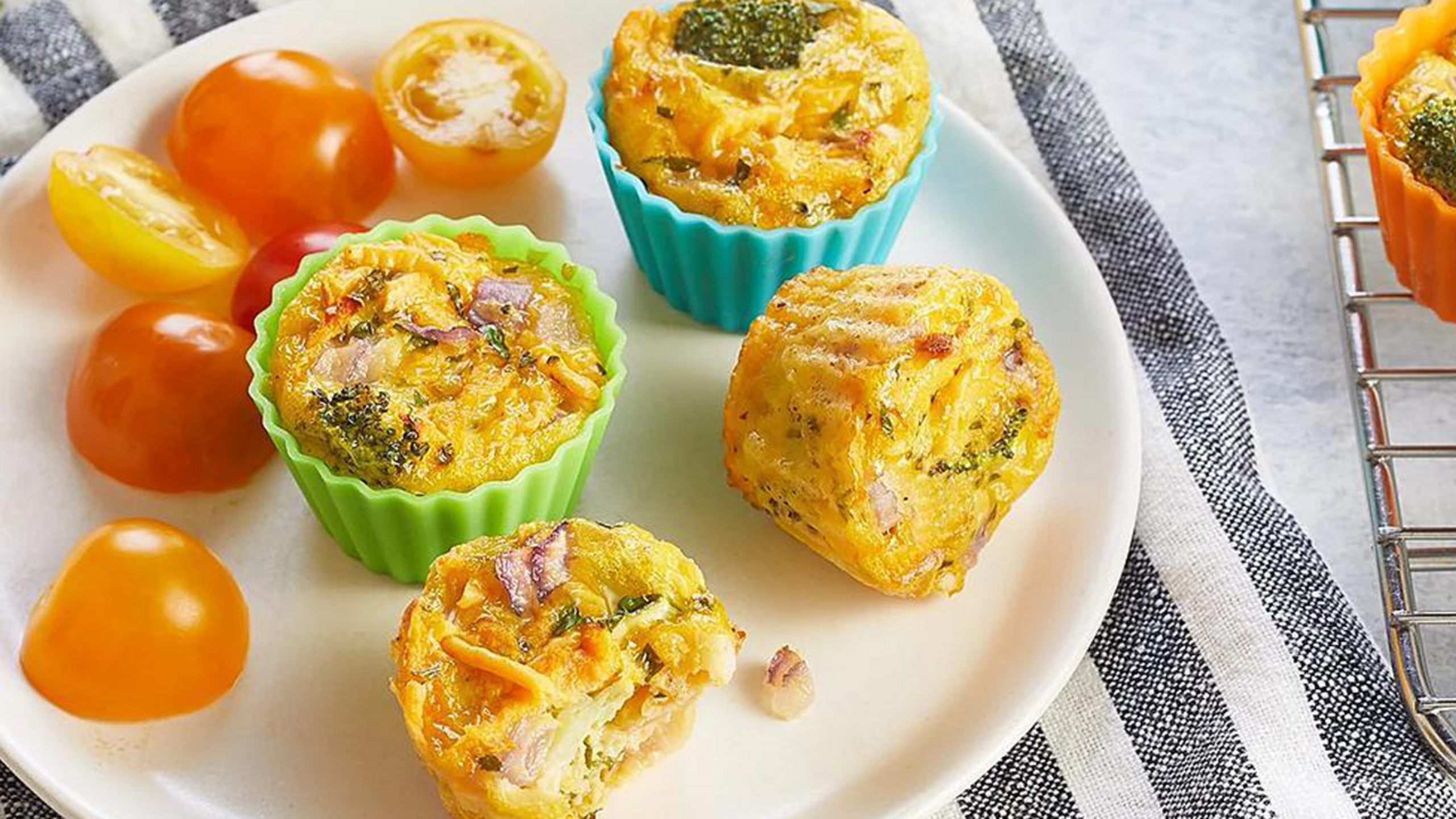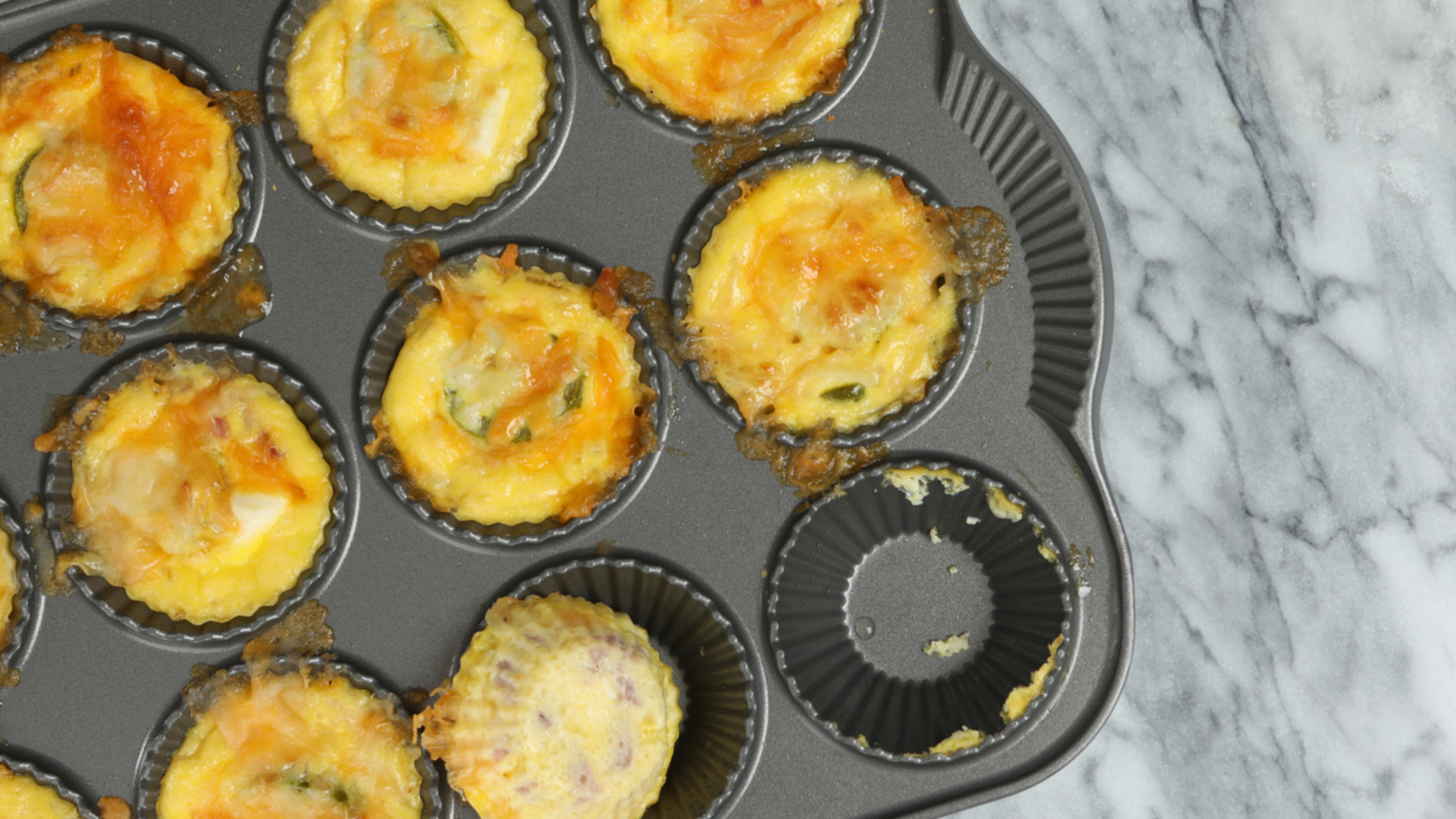 4. Spoon egg mixture evenly into each muffin cup. Bake for 30 minutes.