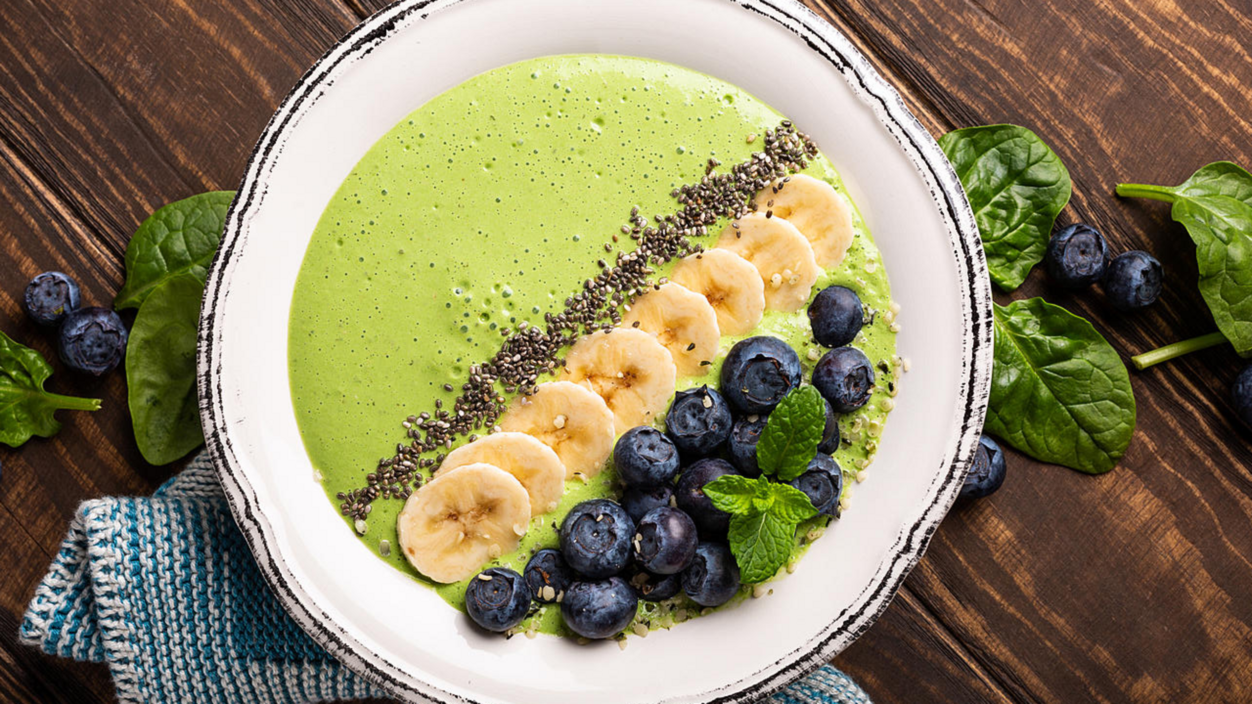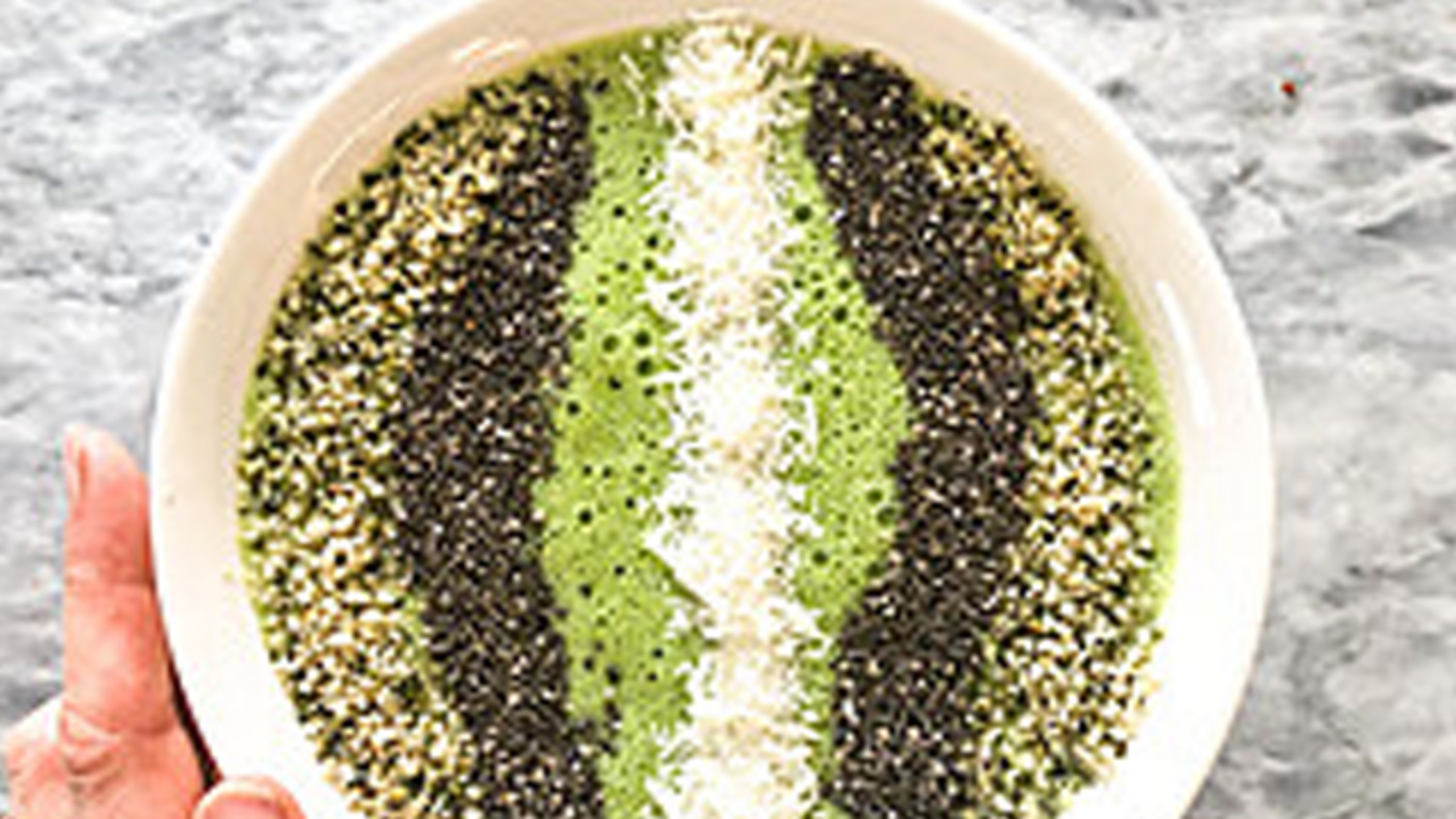 Add frozen bananas, baby spinach, 2 tbsp hemp seeds, water and ice cubes to the blender. Blend until smooth. Divide between bowls and top with coconut flakes, chia seeds and remaining hemp seeds. Enjoy right away!