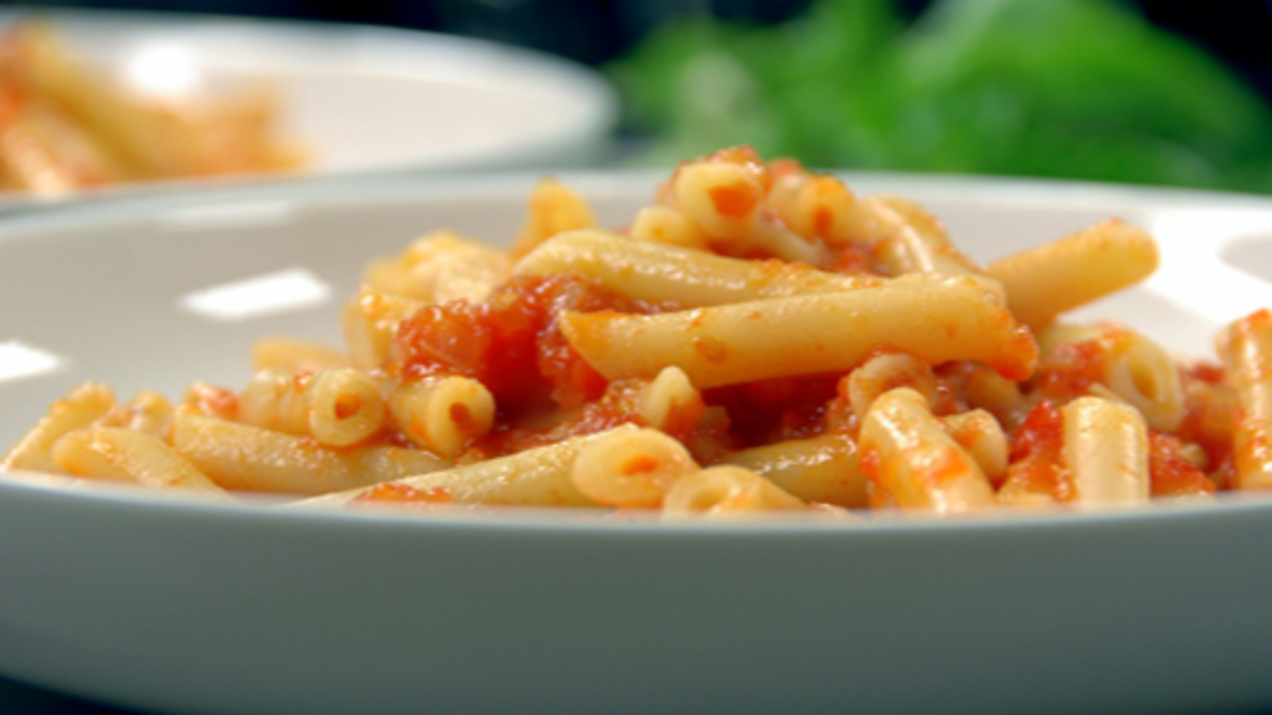 To finish the dish, taste the sauce for seasoning. Combine the pasta with just enough sauce to liberally coat it. If the sauce seems too thick, add a bit of the reserved cooking water to thin it out.