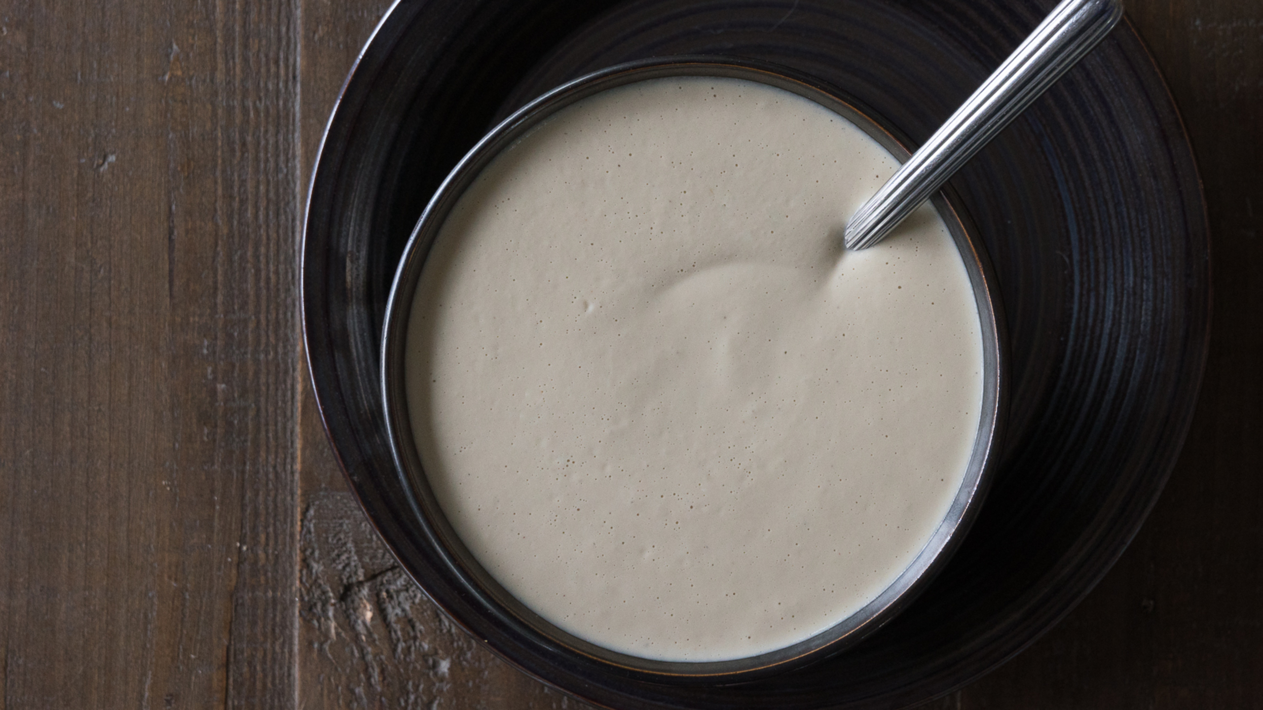 To finish the sauce, add the cashews, the remaining vegetable stock, white wine, garlic, nutritional yeast, onion granules, nutmeg, white pepper and salt (if using). Blend on high speed until smooth. Add more liquid if you choose to have a thinner consistency.