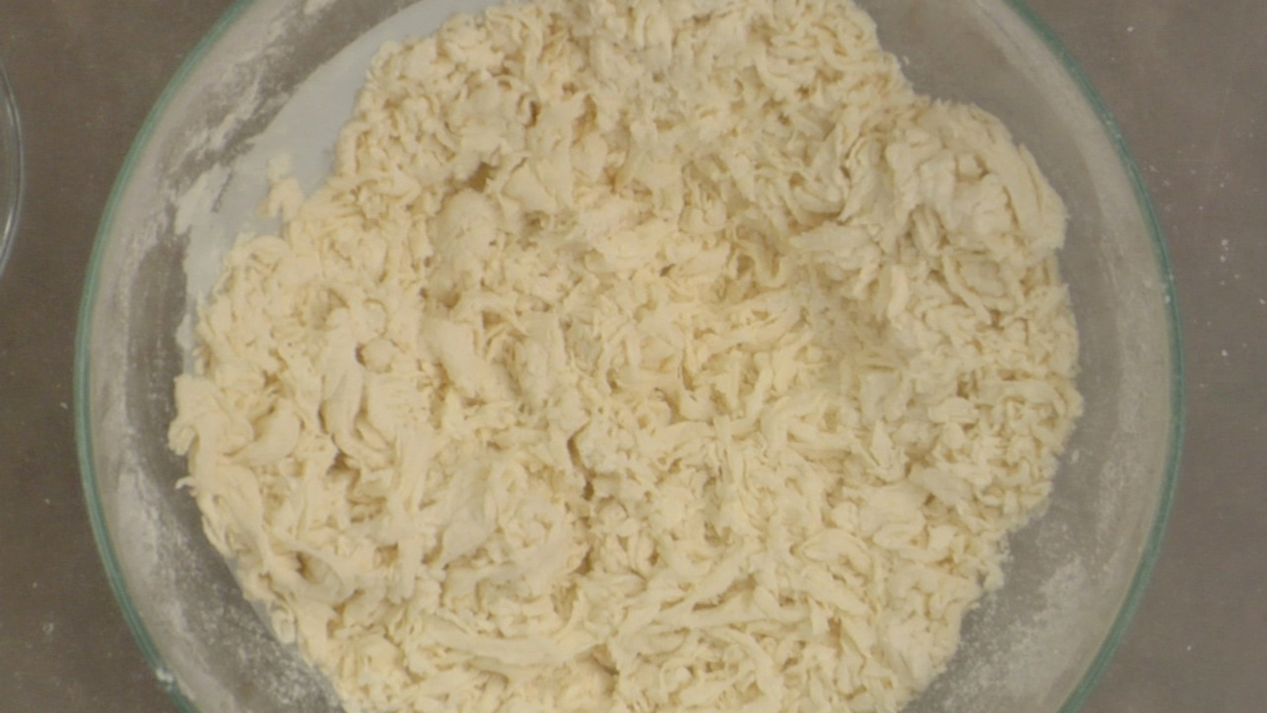 At this point, add about 1/2 of the remaining water and continue to mix until the dough begins to separate into strands. Finally, add the rest of the water and mix and squeeze the dough together until it binds into a ball. The dough will not be smooth at this point but will begin to show elasticity. Let the dough rest in the bowl for 30 minutes.