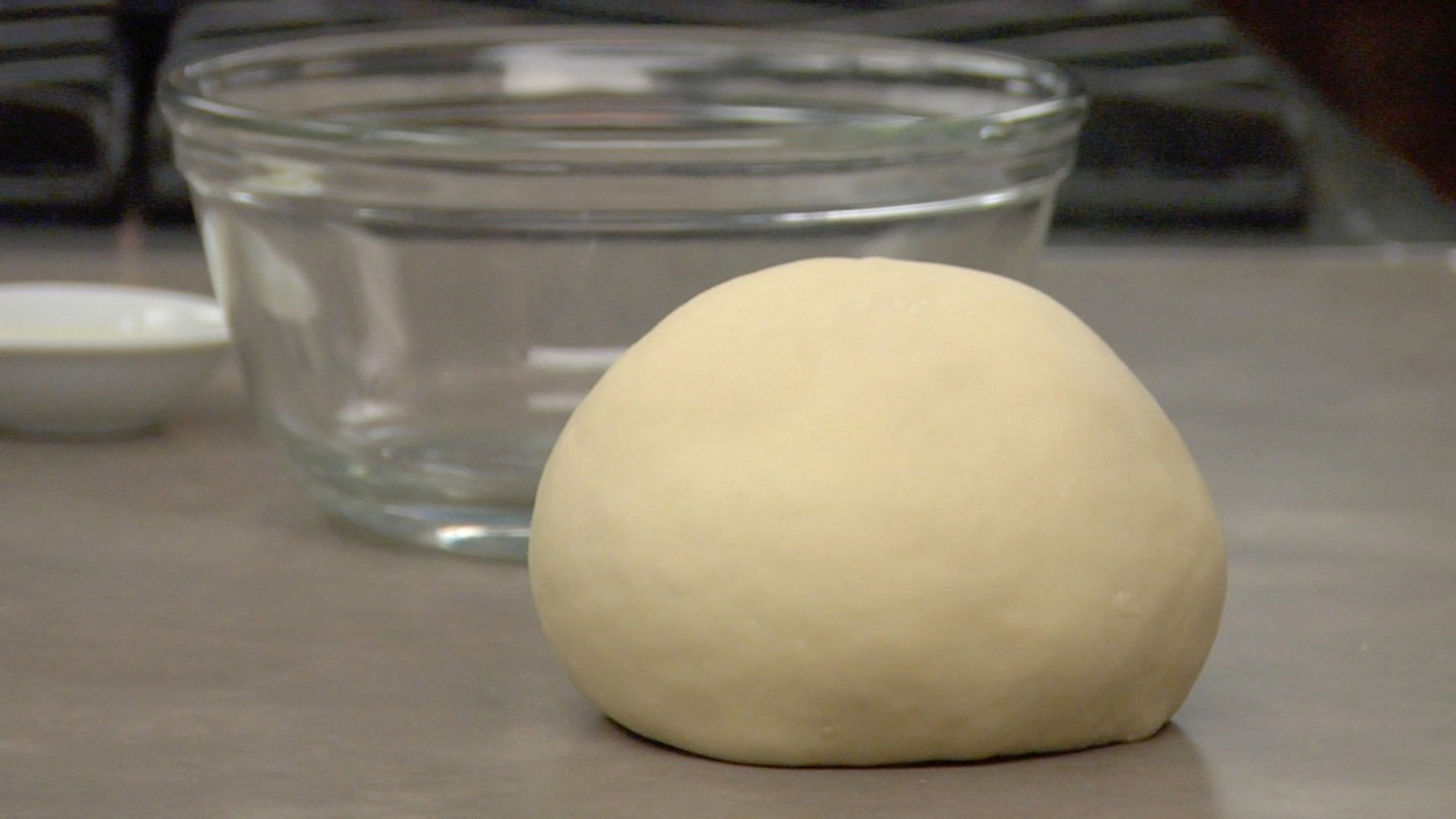 To knead the dough, on the countertop, sprinkle on a bit of corn or tapioca starch, just enough to prevent the dough from sticking. Remove the dough from the bowl and place on the lightly–dusted counter. Knead until very smooth and shiny, about 8 to 10 minutes. At this point, form the dough into a tight ball and rub with a bit of oil. Place the dough ball into a clean bowl, cover with a cloth and allow to rest for 3 to 4 hours before rolling.