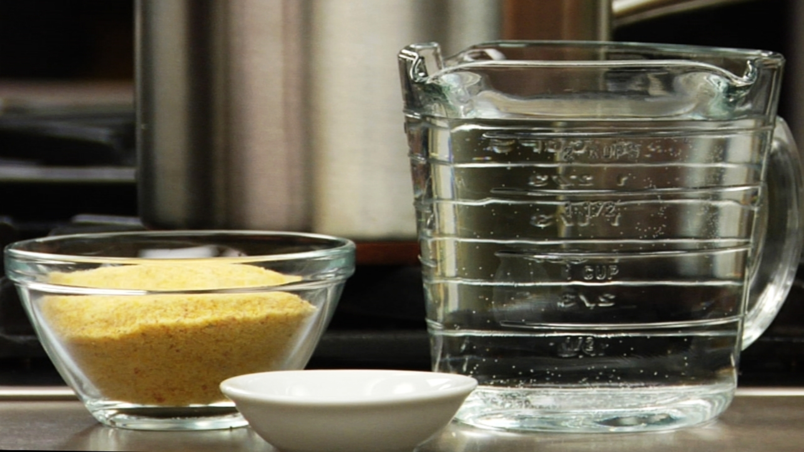Once the polenta comes to a gentle boil, turn the heat down to low and continue to simmer until the polenta is done to your liking. This may take anywhere from 15 to 45 minutes, depending on the grind of the cornmeal. Taste the polenta for doneness. The grains should be fully hydrated and not al dente.