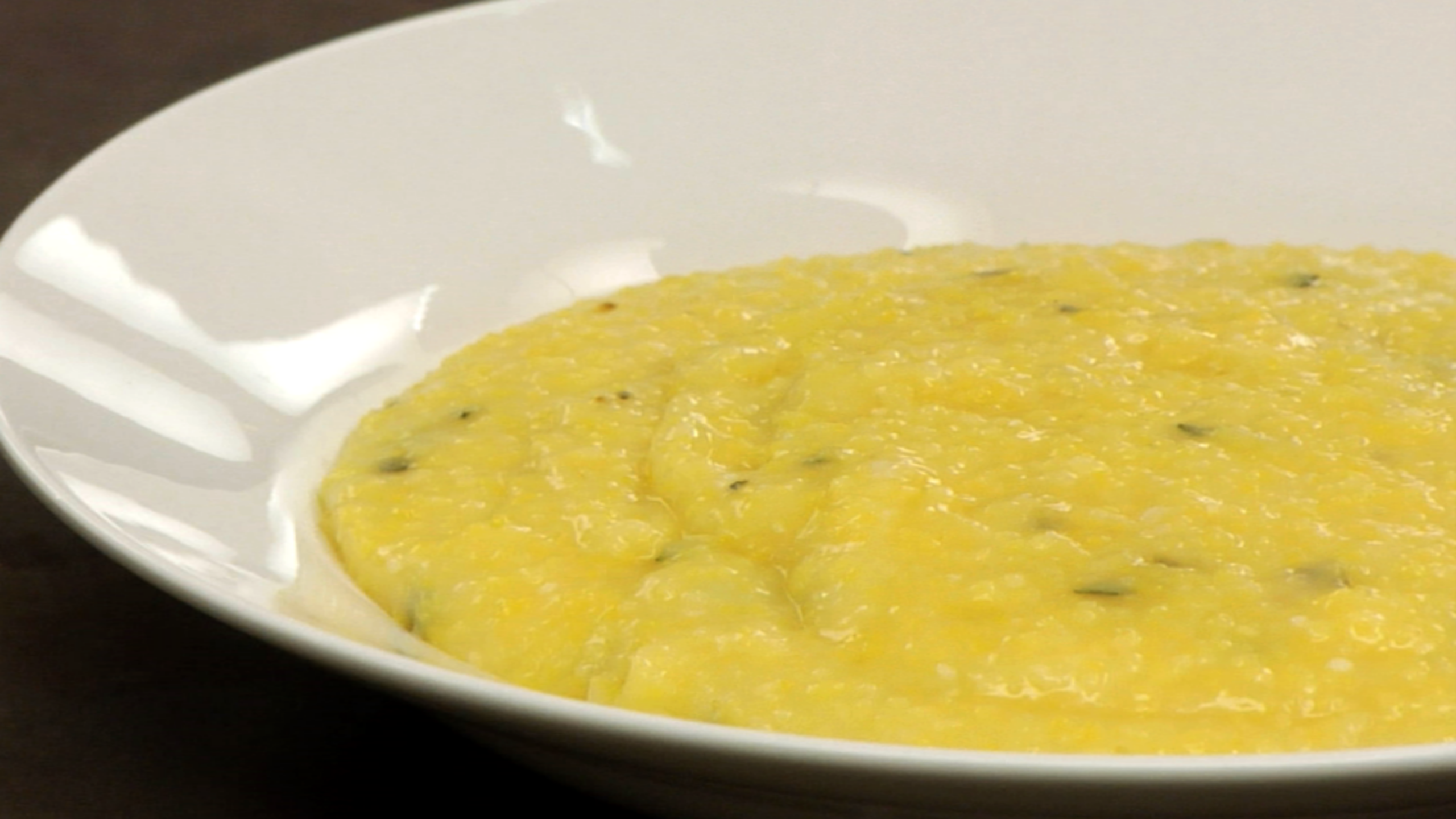 Once the polenta has finished cooking, remove any aromatics, if necessary.