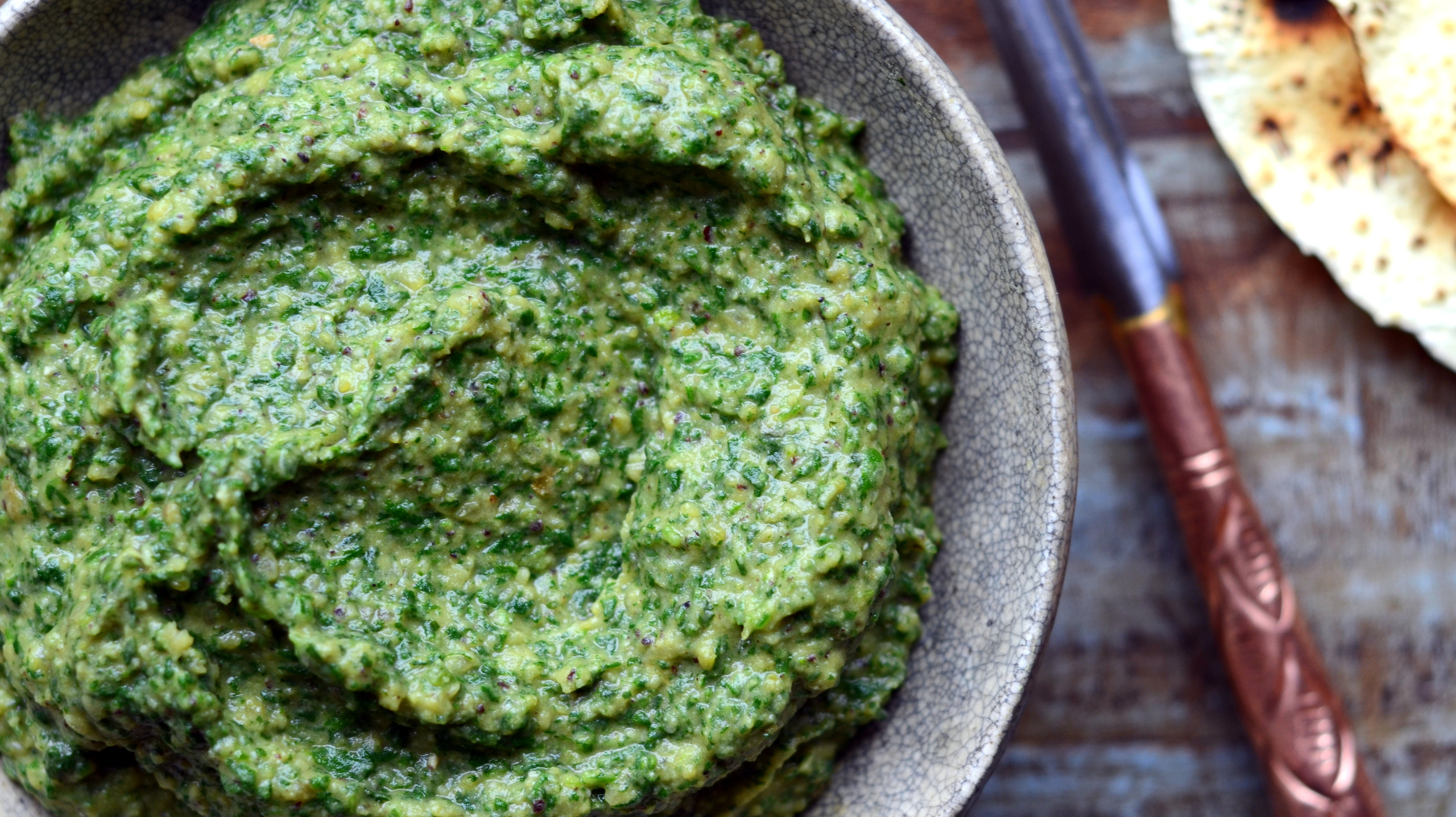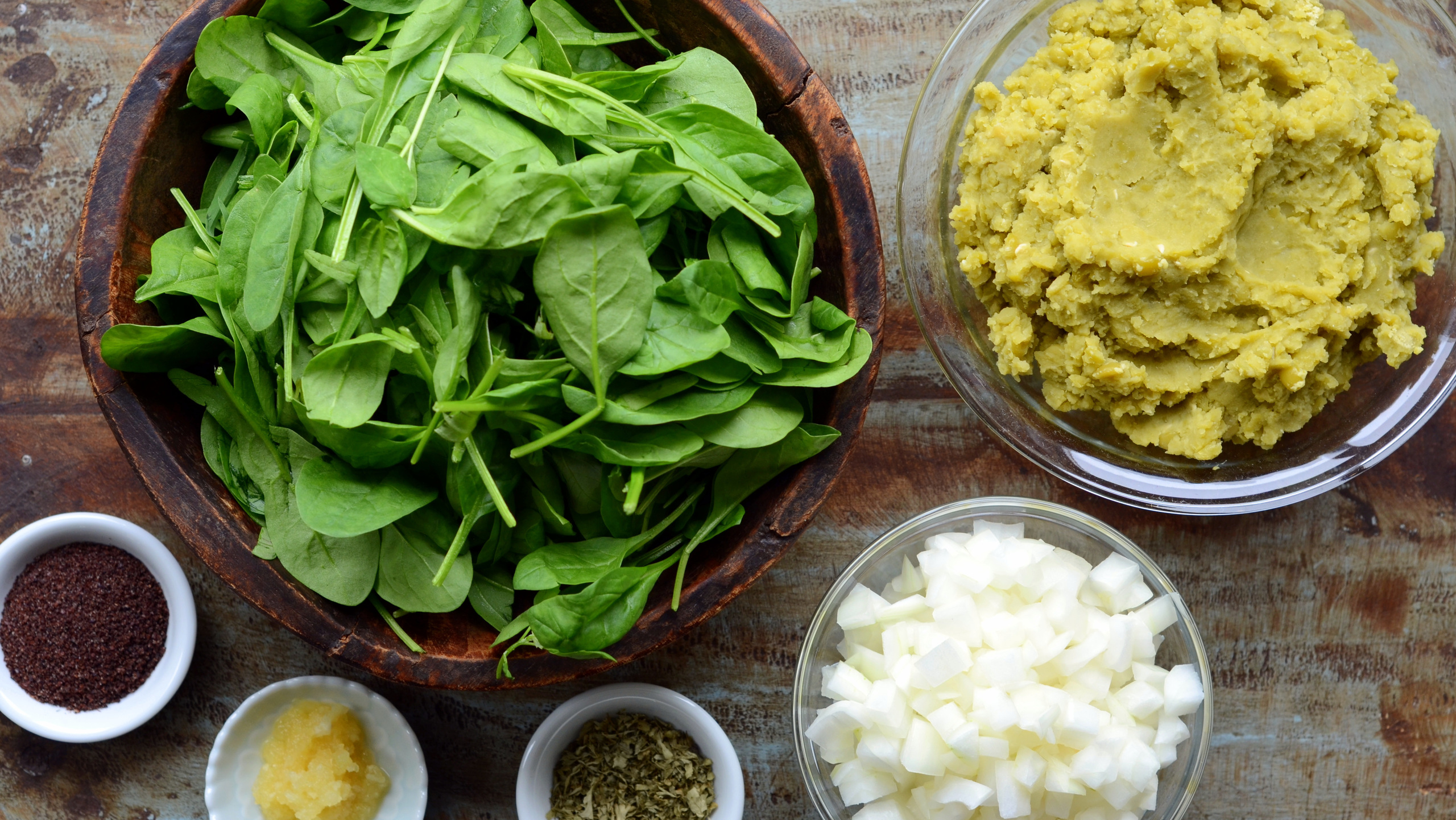 To finish, combine the peas and spinach and the sumac and mint. Lastly, taste for seasoning.