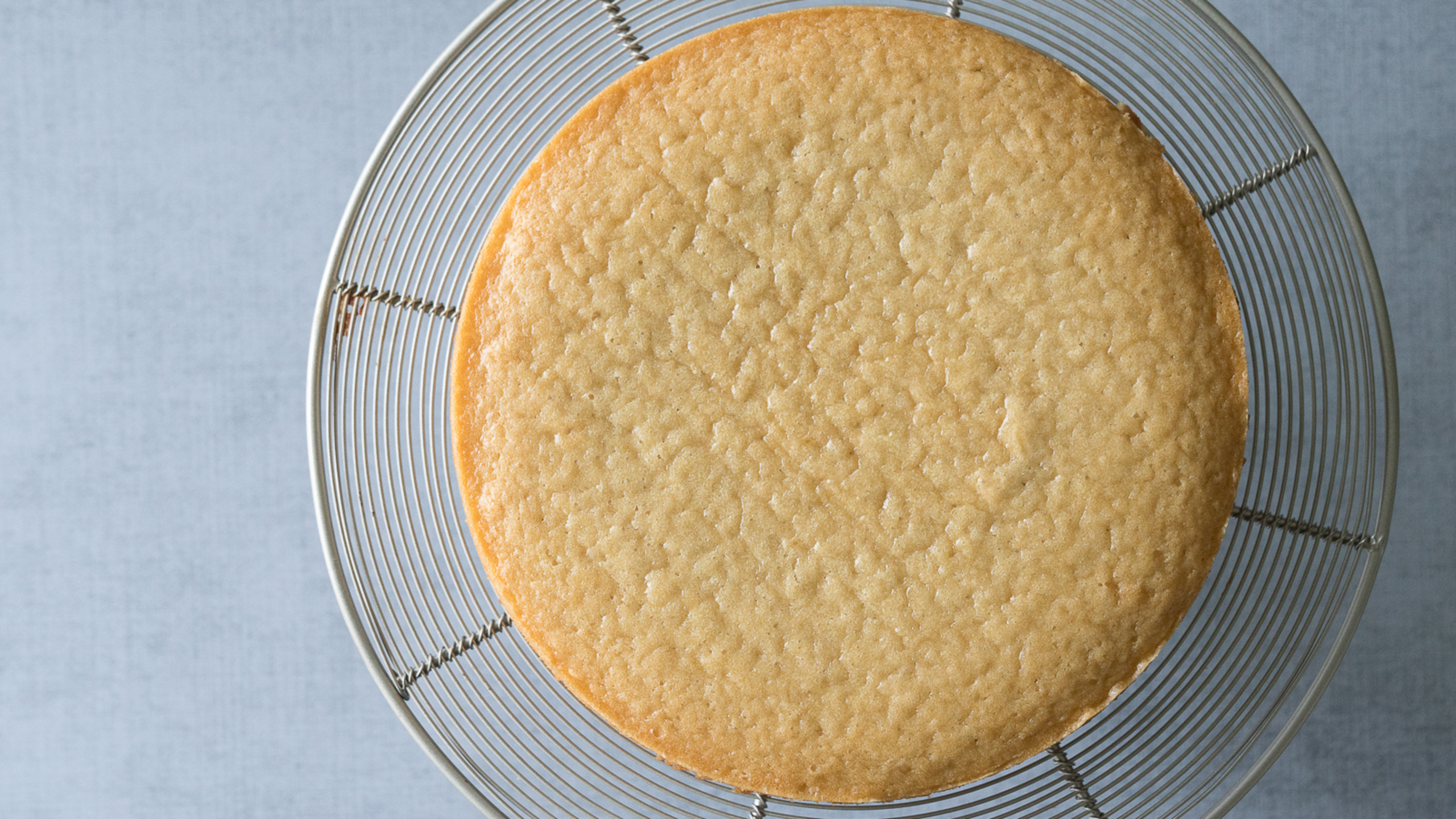 Remove from the oven and place the pan on a wire cooling rack to cool for 10 minutes. Run a thin spatula around the sides of the cake to release the sides from the pan. Invert the cake onto the wire rack, remove the pan and carefully peel off the parchment paper. Invert the cake again so that the top is facing up on the rack. Cool completely.