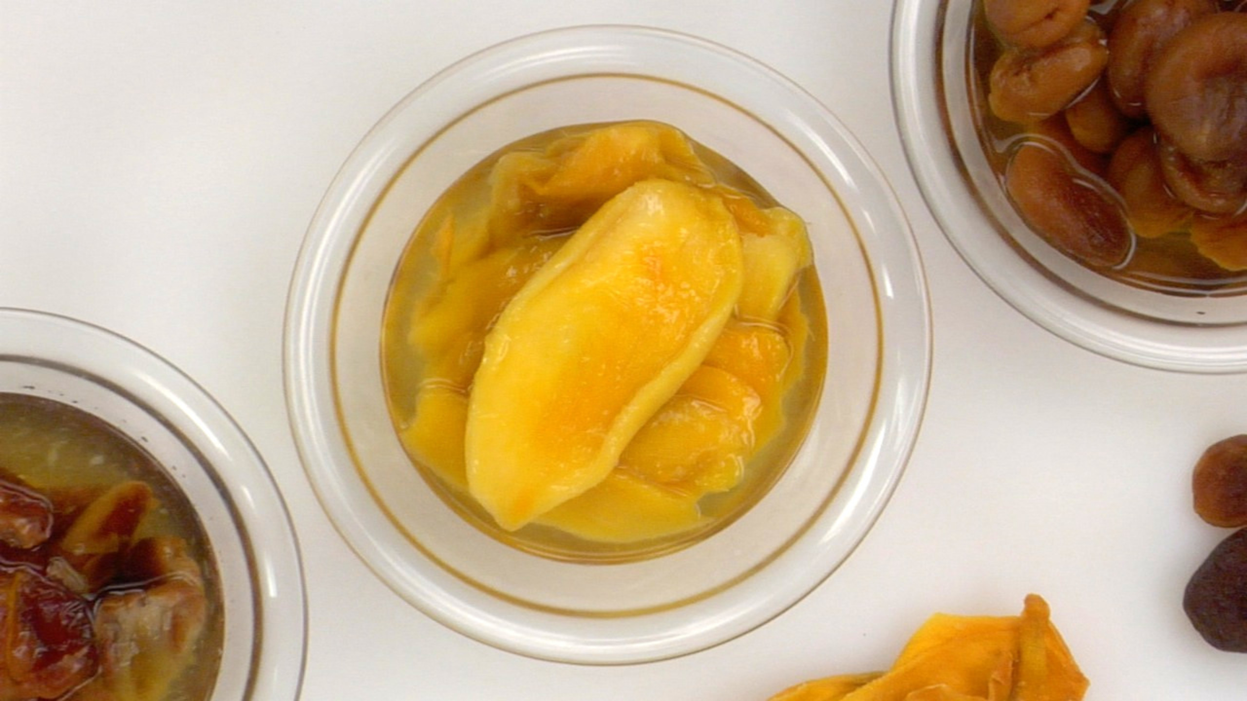 Place the dried mangoes in a bowl and fully cover with water. Soak for about 1 hour or until they are rehydrated and very soft.