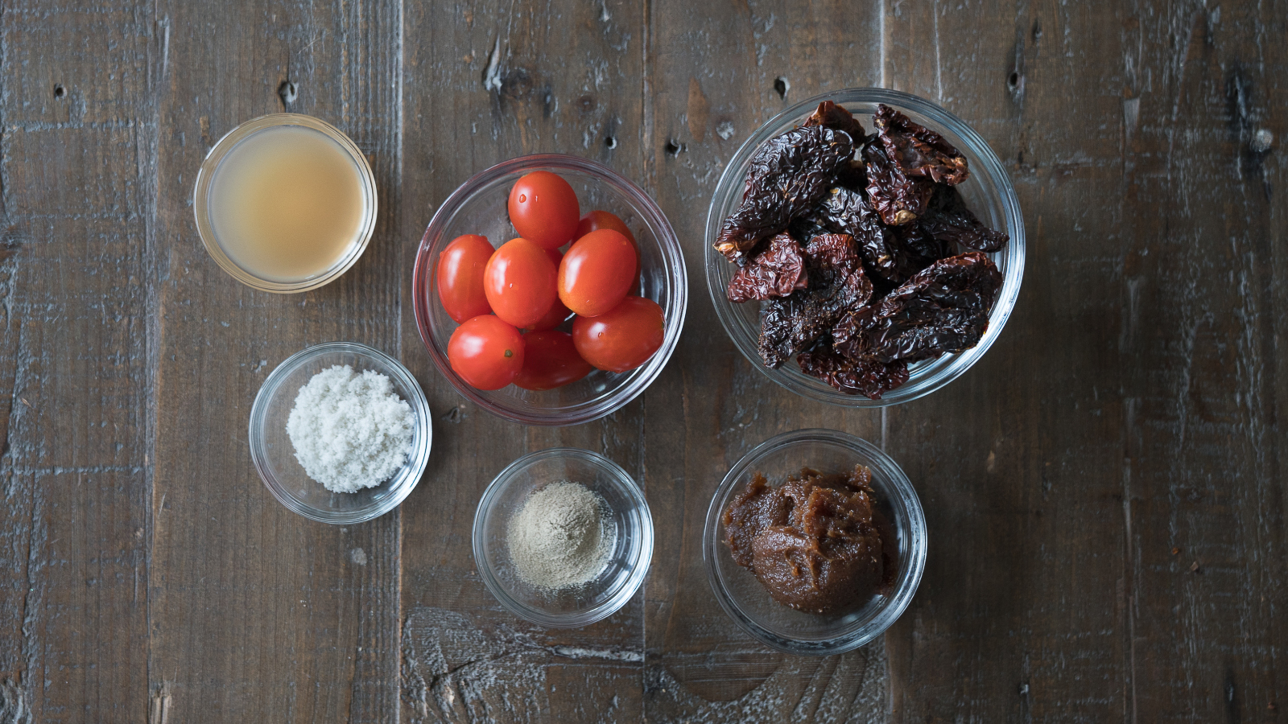 - 3/4 cup sun–dried tomatoes (if not soft, soak in warm water for 30 minutes and drain)